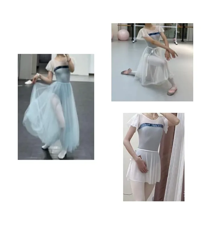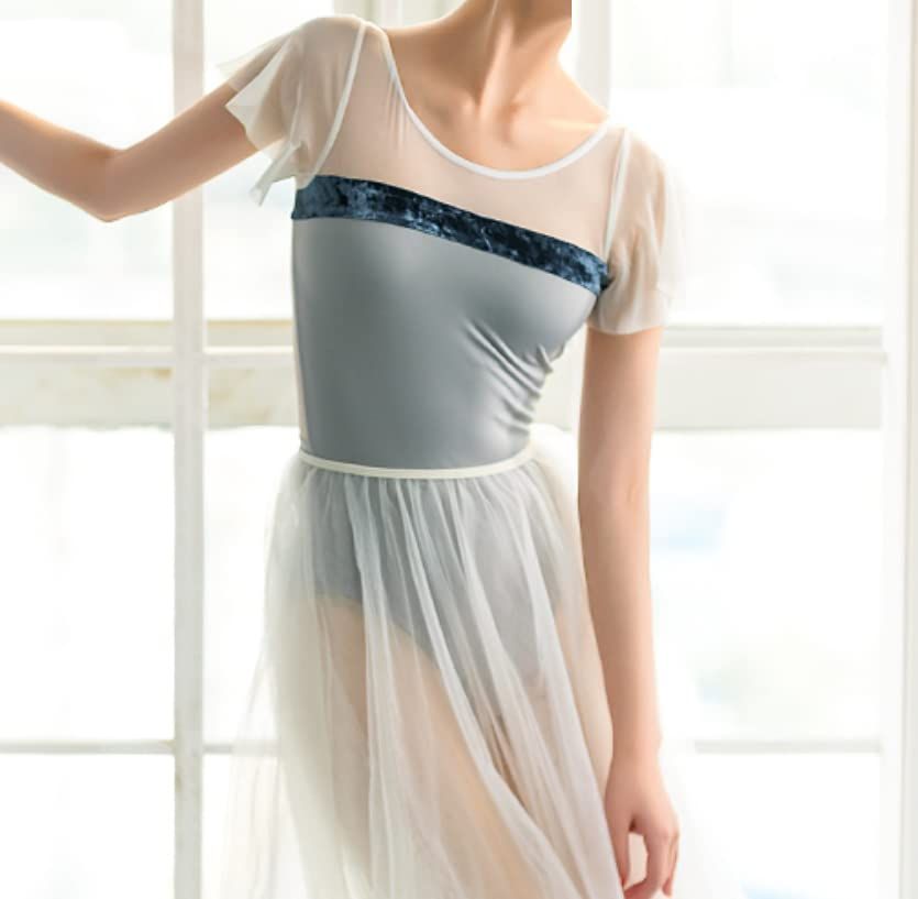 新品 [プロダンス] ProDance ブルー ピンク ベロア 袖 フリル バレエレオタード レディース PLT012M (L ブルーグレー)