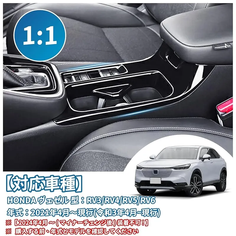 【ヴェゼル アクセサリー 対応車種】:ドリンクカップホルダーパネルはホンダ ヴェゼル RV系に対応します。HONDA ヴェゼル 型式:RV3/RV4/RV5/RV6。年式:2021年4月~(令和3年4月~) 。※年式・グレード・オプション等により適合しない場合が御座います。※購入する前、年式とモデルを確認してください。※