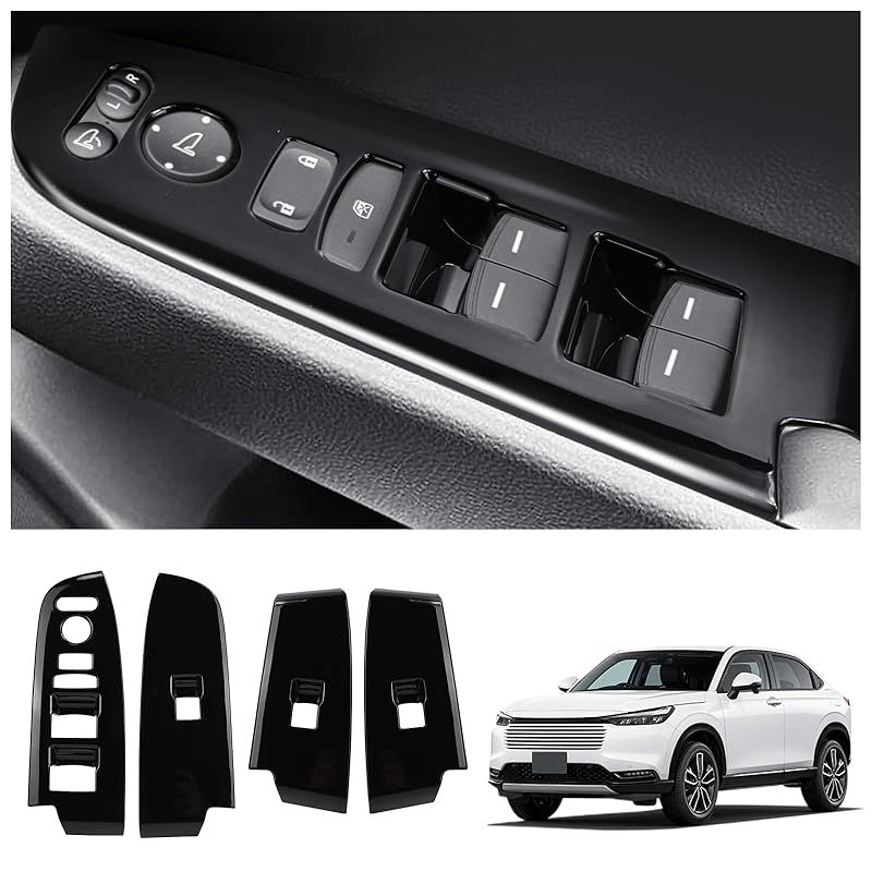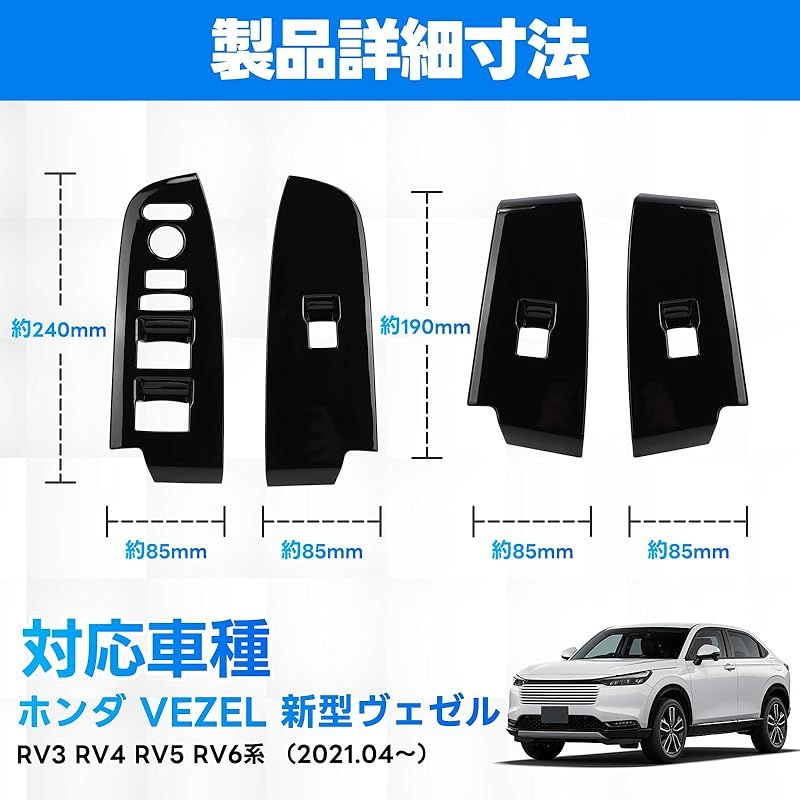 ドアスイッチパネル SANQUUQOO ホンダ VEZEL RV系 RV3 / RV4 / RV5 / RV6 専用内装 ウィンドウスイッチパネル パーツ プロテクター ガーニッシュ ウインドウスイッチカバー 4PCS (ピアノブラック) 0