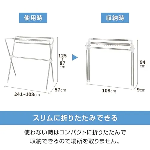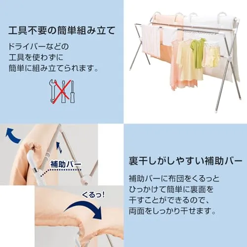 新品 天馬 幅と高さのダブル伸縮可能 布団が4枚干せる 洗濯物干し 組立式 屋外用 伸組立式伸縮布団干しX型 ホワイト 幅108-241×奥行57×高さ87-125cm PS-07K