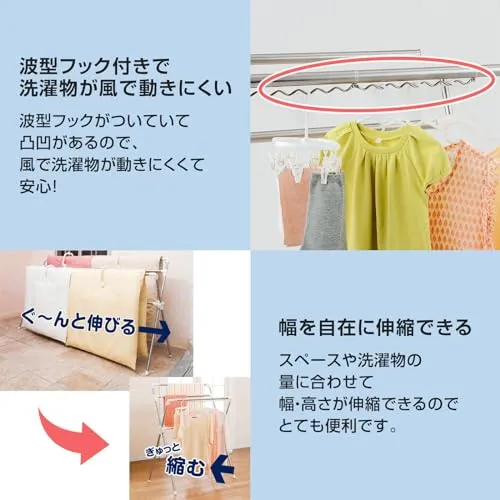 波型フック付きで、洗濯物のハンガーが風で動きにくい