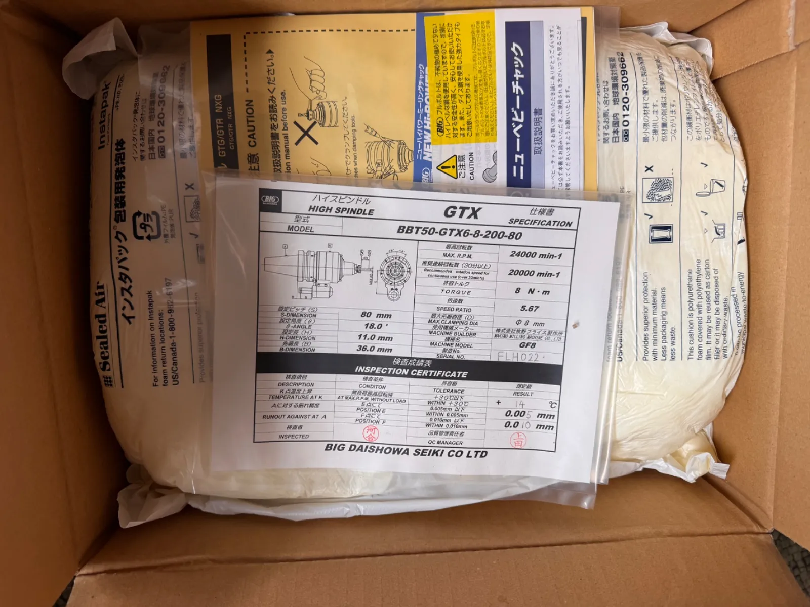 BIG DAISHOWA 増速スピンドル ハイスピンドルBBT50- GTX6-8-200-80 BIG-PLUS 未使用