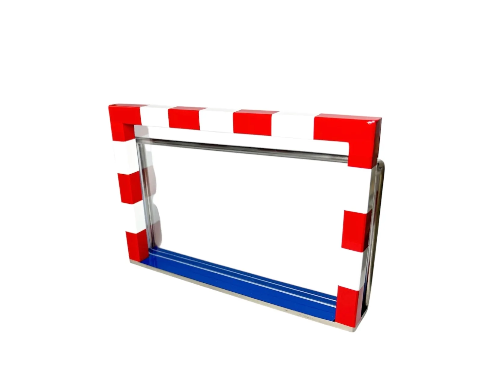 【ハンドボールゴール 写真立て】 (1/20スケール) 横150㎜ × 縦100㎜ ×奥行25㎜ 素材:SUS 304(stainless steel) シール:屋外カッティングシート(白・赤) ケース:硬質カードケースB7(L判写真用) [配送方法] らくらくメルカリ便 ☆ Perfect as a Graduation or Team Farewell Gift ☆ Handball Goal Photo Frame (1/20 Scale) Size: Width 150 mm × Height 100 mm × Depth 25 mm Material: SUS 304 (stainless steel) Stickers: Outdoor-grade cutting sheet (white & red) Photo Case: Hard card case B7 (L-size photo compatible)