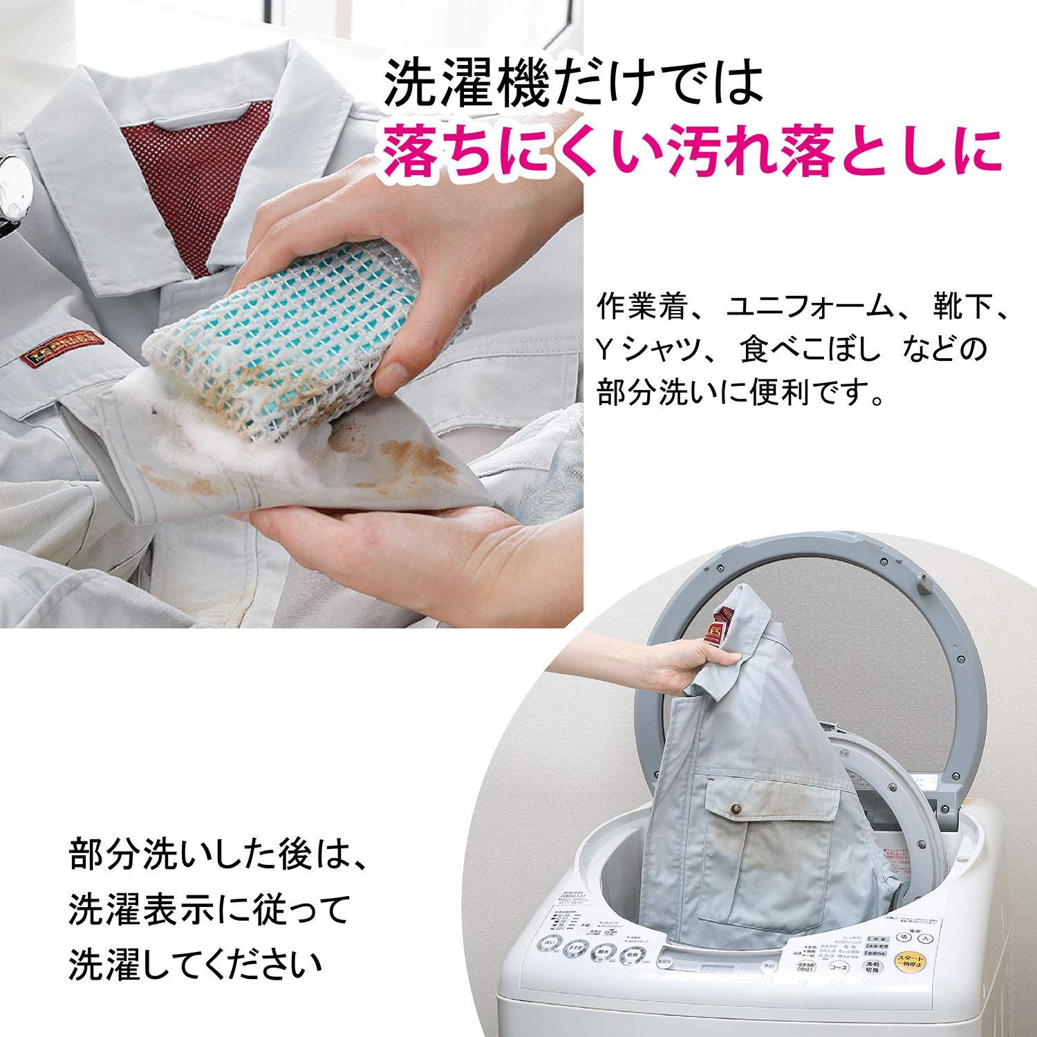 【使用方法】洗剤を落としたい汚れにつけた後、水に浸したブラシ(本品)でこすってください。その後、洗濯機の表示に従い洗濯してください。