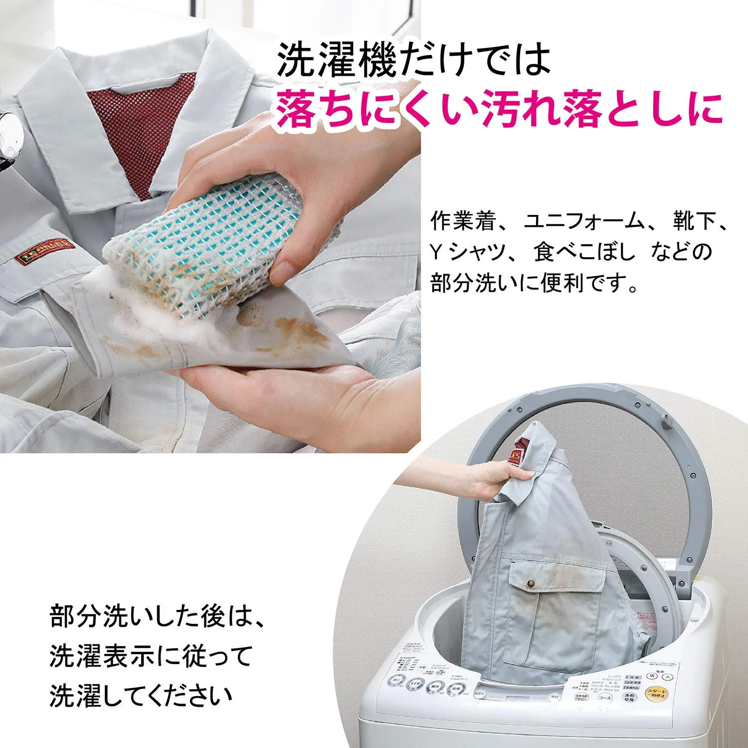 洗濯機では落ちにくい汚れを落とせる洗濯ブラシです。お手持ちの石鹸を入れて洗ってください。