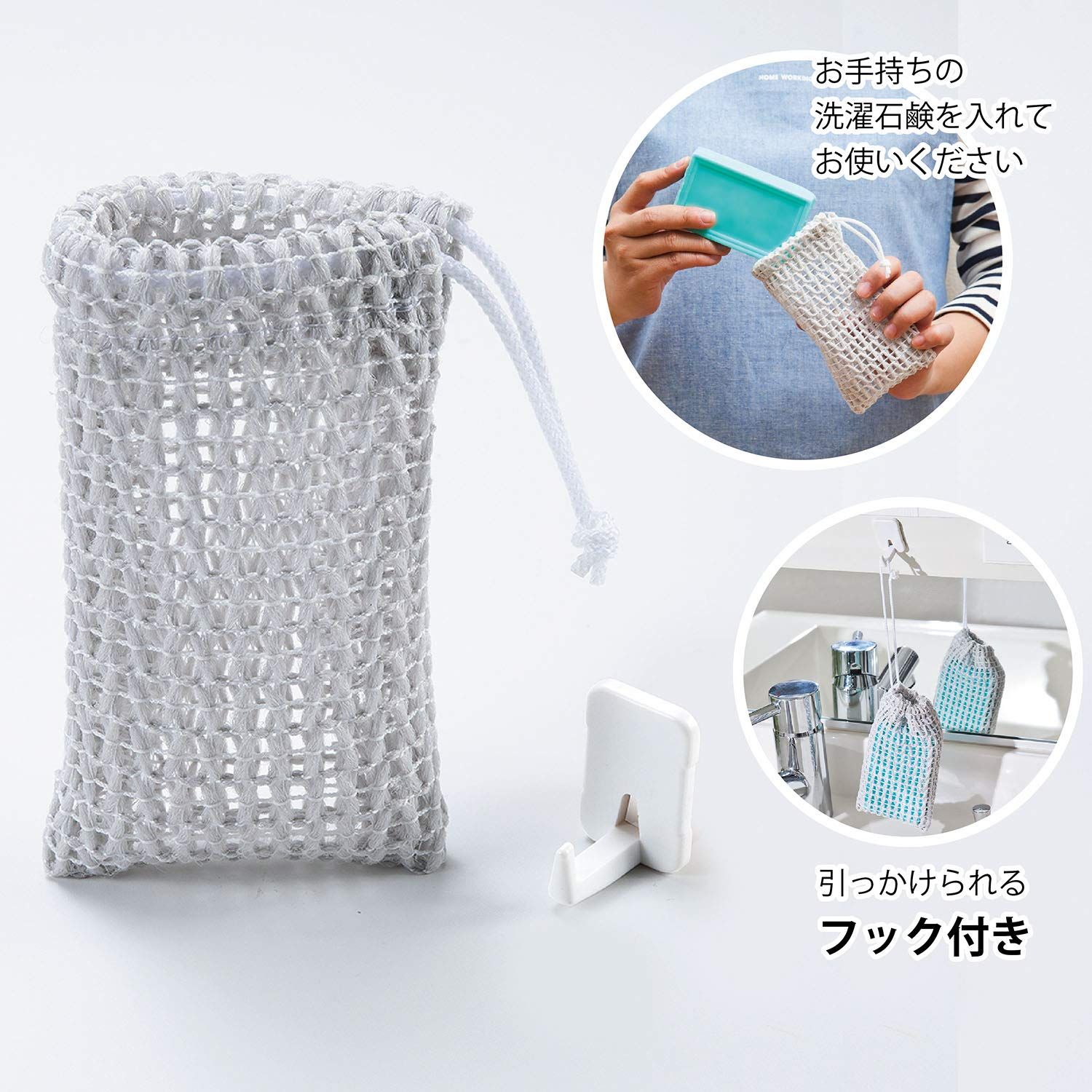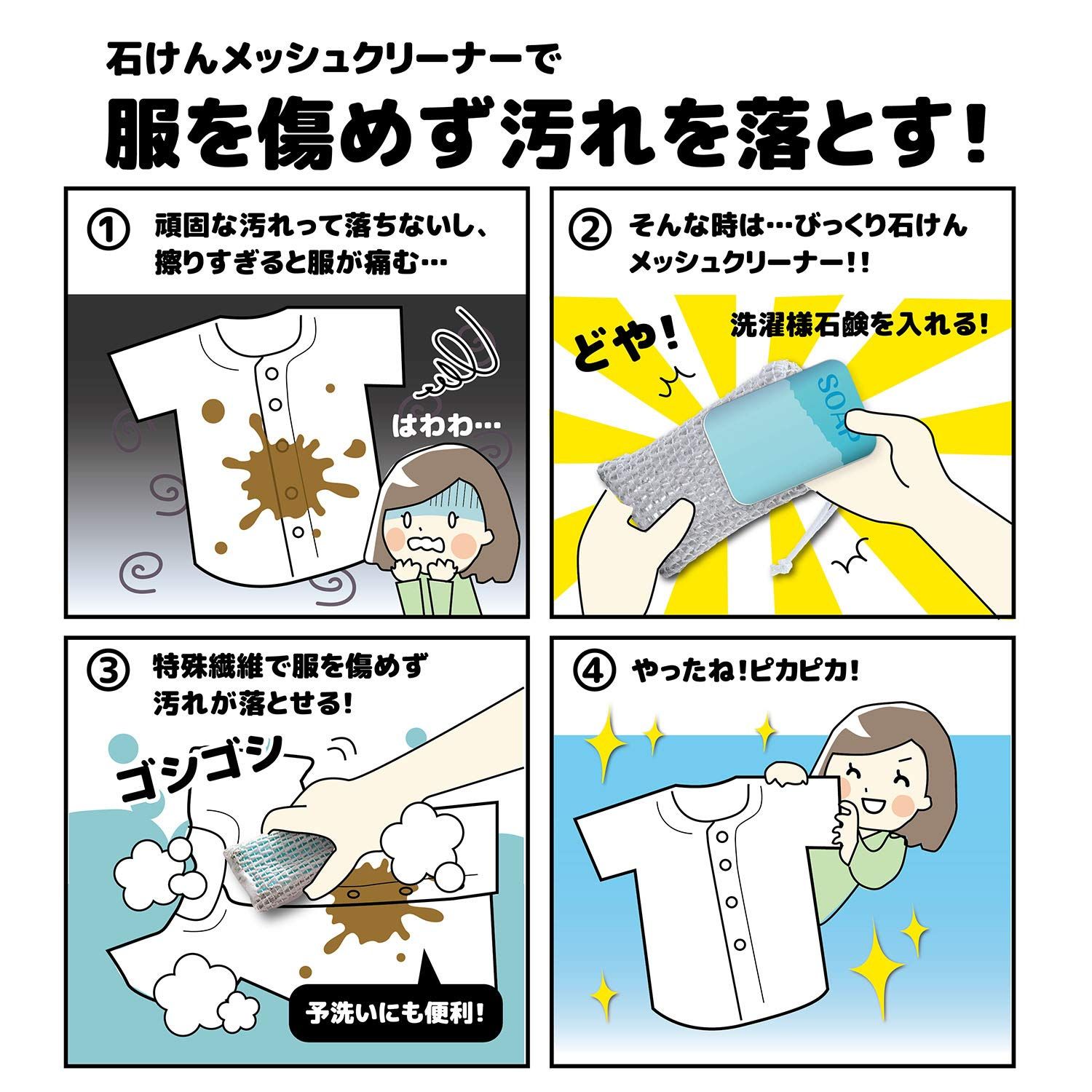 【材質】メッシュ/ポリエステル、ひも/ナイロン、掛けフック/スチロール樹脂、アクリル系粘着剤、耐熱温度/80度 お手持ちの石けんを入れて洗う、洗濯メッシュクリーナー。 特殊な繊維でできているので生地を傷めず、洗濯機だけでは落とせない汚れも落としやすい。 洗濯物の部分洗いに最適です。 抗菌加工を施した糸を使用、菌の繁殖を抑制します。 泥汚れや食べこぼし、ユニフォームなどの衣類の下洗いにも活躍します。 乾きや水切れが速いメッシュタイプです。 石けんが小さくなっても使いやすく、節約にもなります。 収納に便利なフック付。 ・使用方法 1)石けんを入れて、水に浸して軽くこすってください。 2)こすったあとは、洗濯表示に従い、洗濯してください。 最後までご確認頂き誠にありがとうございました。 上記をご確認頂き、ご購入いただけましたら幸いです。 何かご不明な点がございましたらお気軽にメッセージからお問い合わせ下さい。