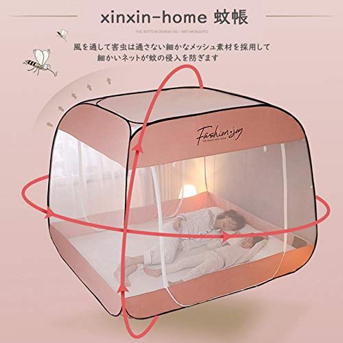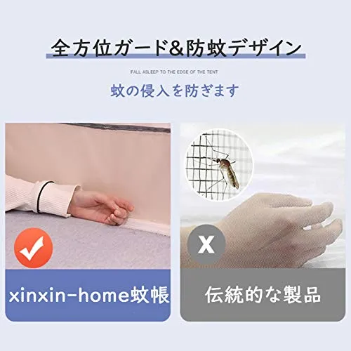 新品 xinxin-home蚊帳 ワンタッチ モスキートネット 折りたたみ式 蚊よけ 虫除け 夏 蚊対策 全方位ガード テント式 キャンプ式 底面付き レース ベッド 持ち運べる 通気性よい 組み立て簡単 収納袋付き ドア設計 日本語説明書付き 幅150cm×