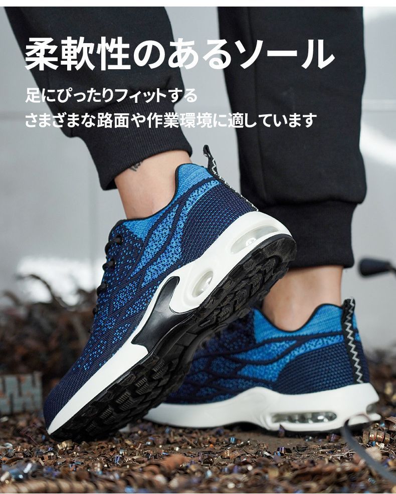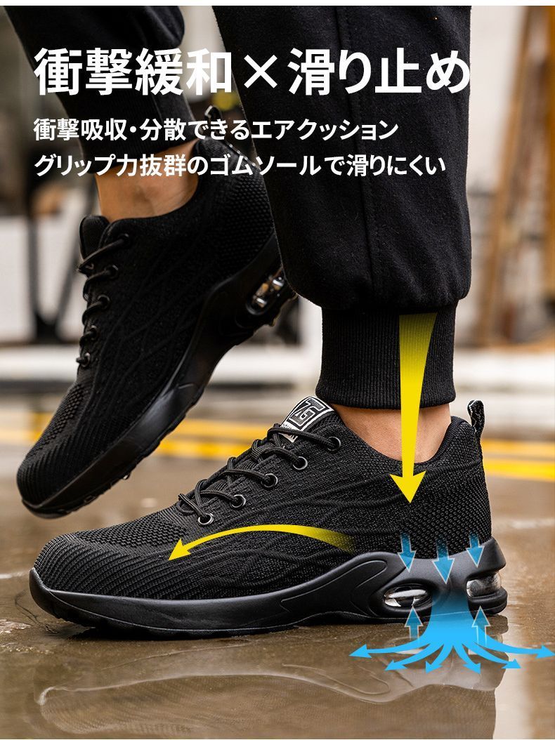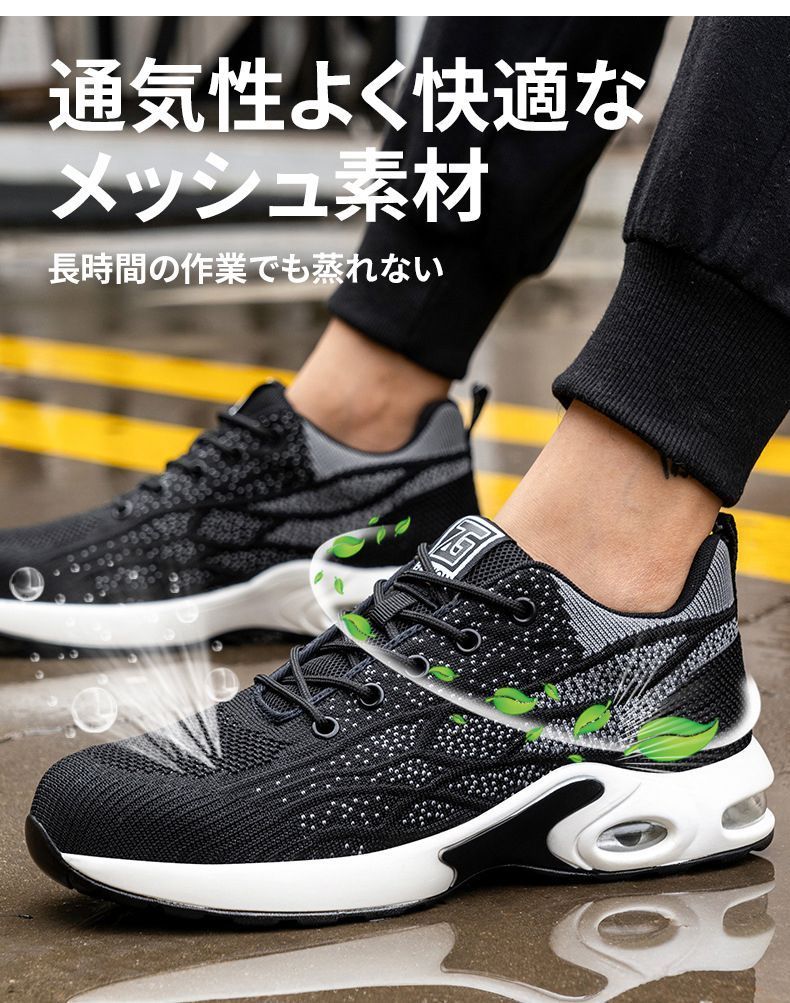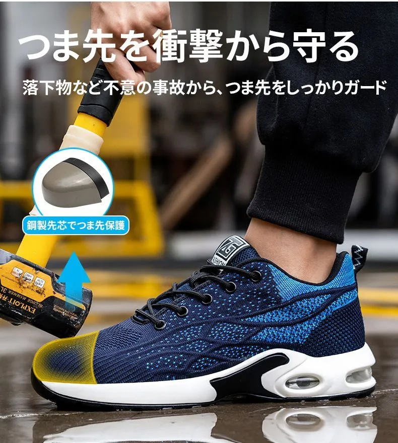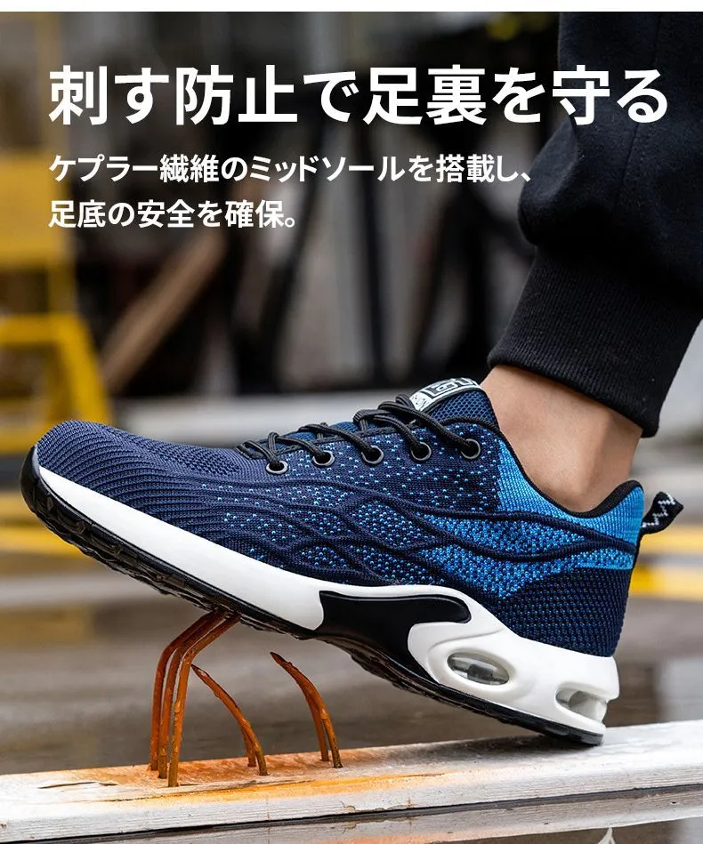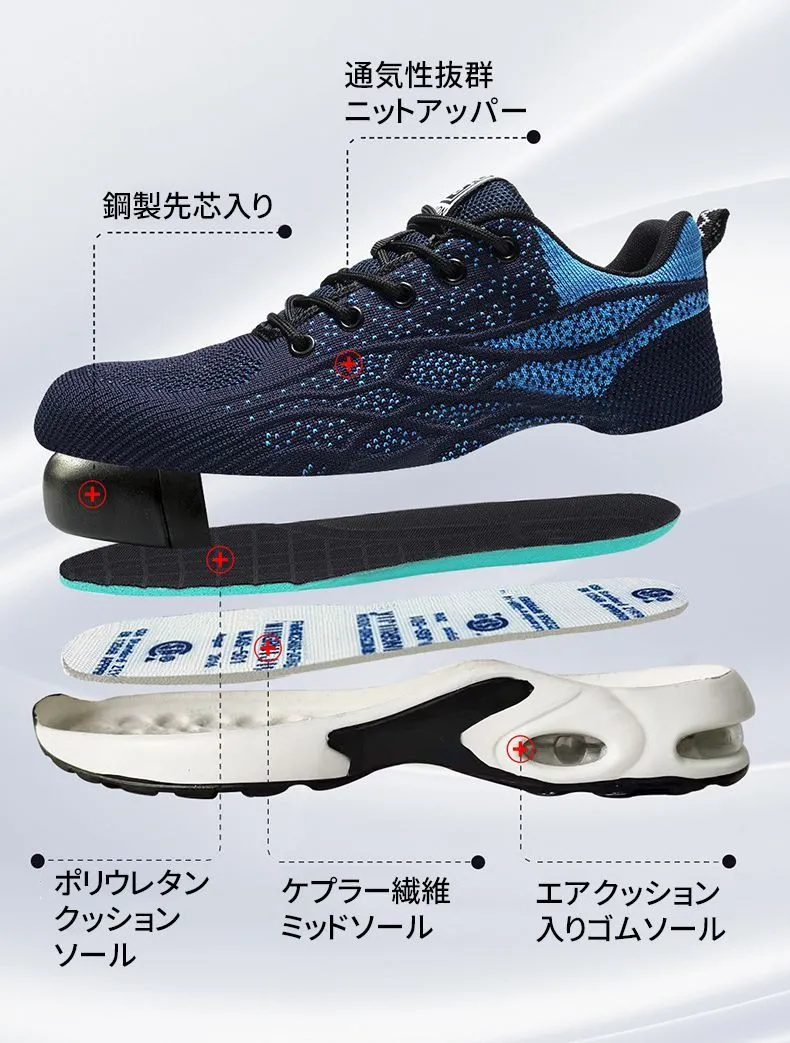安全靴 作業靴 ワークシューズ スニーカー メンズ レディース 男女兼用 軽量 耐磨耗 衝撃吸収 耐滑ソール エアクッション 鋼先芯 滑らない 刺す叩く防止 作業用靴 おしゃれ セフティーシューズ 安全スニーカー