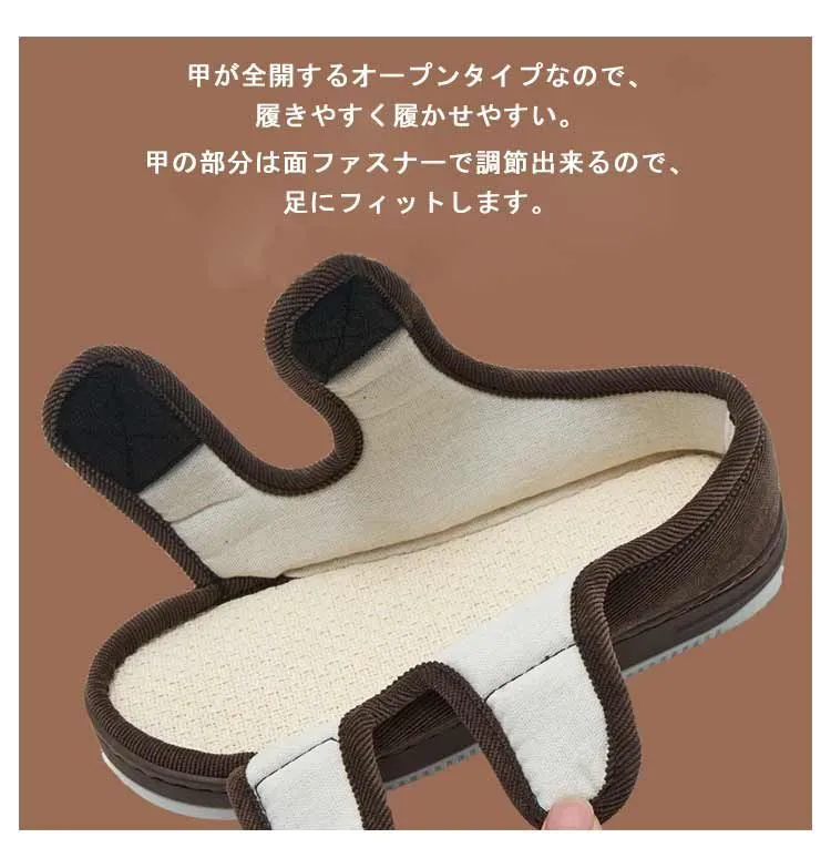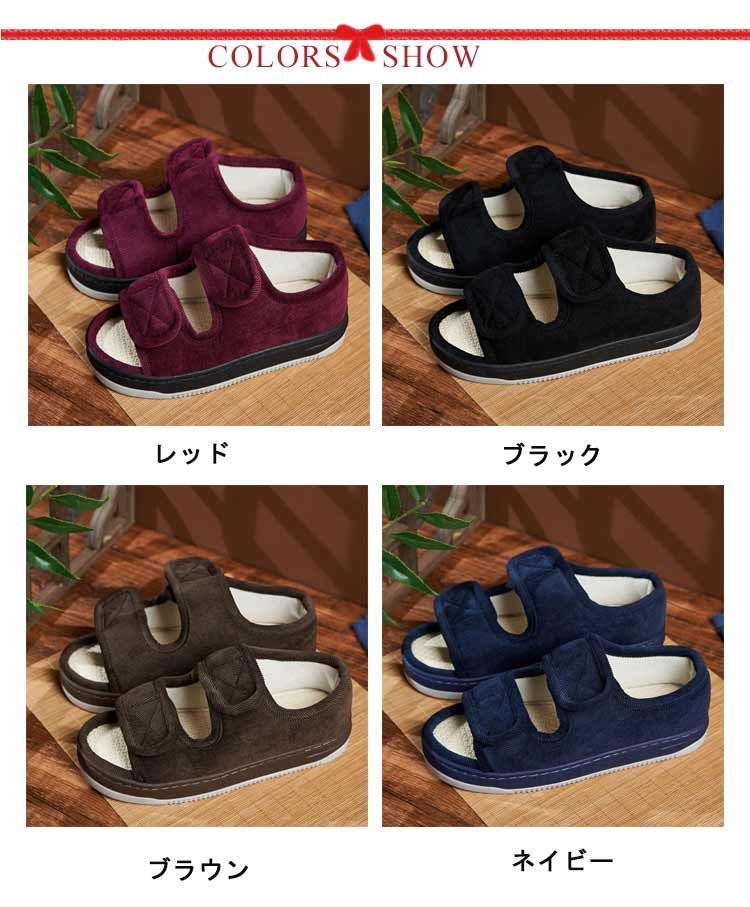 ■こちらの商品は沖縄・離島は配送料が異なります。 ご購入前にお知らせください。 お住まいの地域に合わせた専用ページを作成いたします。 サイズ :23〜23.5 24〜24.5cm 25〜25.5cm 26〜26.5cm 27〜27.5cm 28〜28.5cm 29〜29.5cm サイズについての説明:23〜23.5 24〜24.5cm 25〜25.5cm 26〜26.5cm 27〜27.5cm 28〜28.5cm 29〜29.5cm 素材:コーデュロイ 綿麻 TPR 色:ブラウン ネイビー ブラック レッド 甲が全開するオープンタイプなので、履きやすく履かせやすい。 甲の部分は面ファスナーで調節出来るので、足にフィットします。 弾力性に優れ、しなやかで屈曲性の良い合成底(TPR)が歩行をしっかりサポート。グリップ性もあります。 足が不快になる蒸れ感を軽減する為、中敷きには、抗菌防臭・吸水速乾機能の綿麻素材を使用しています。 プラス配送料の目安 沖縄・離島 +2,000円