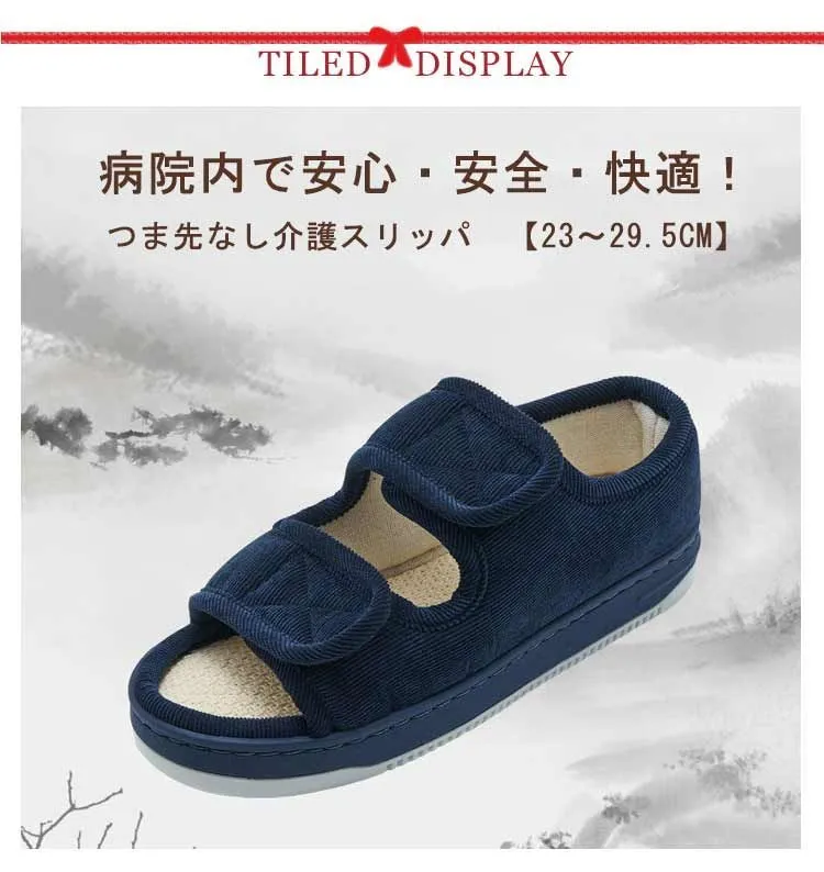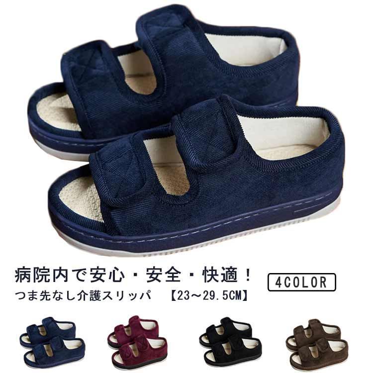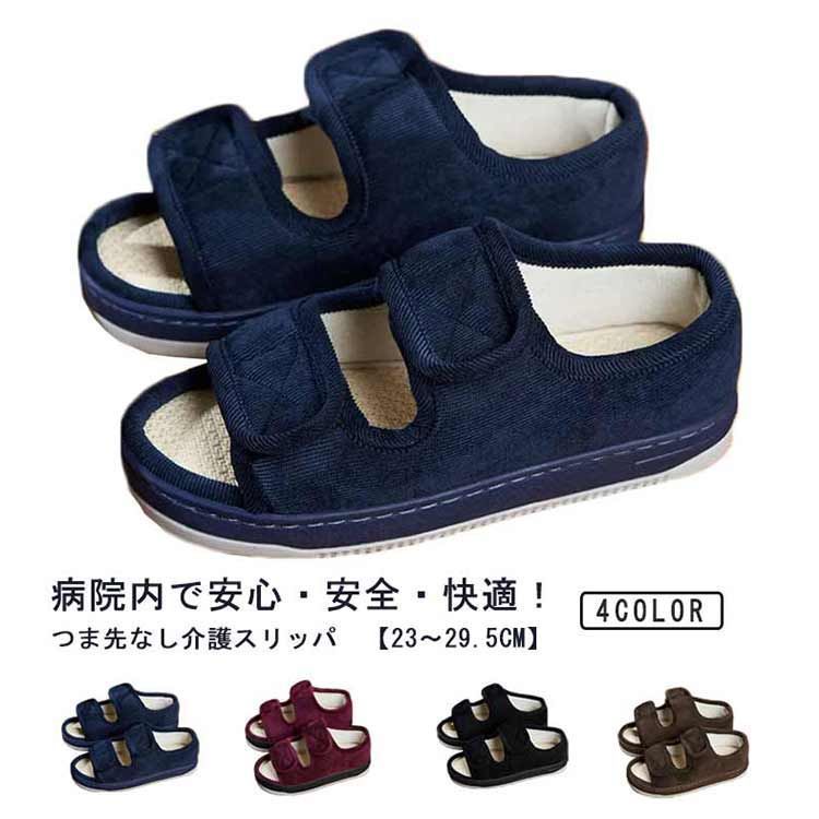 介護シューズ 室内履き 室内シューズ 紳士 高齢者 病院 施設 入院入所 つま先なし かかと付き 両足 つまずき防止 転倒防止 履きやすい 脱げにくい おしゃれ 23 24.5cm