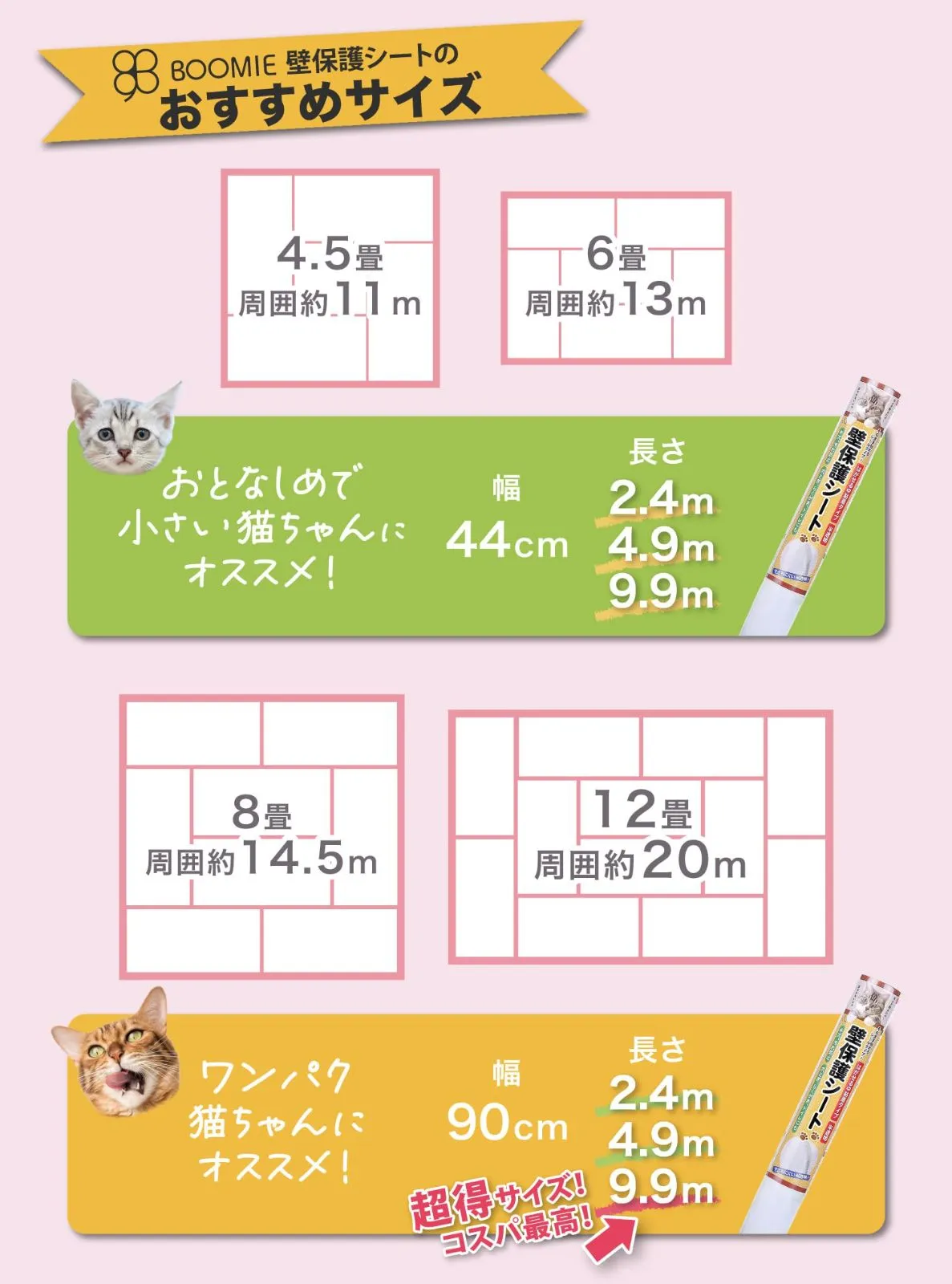 BOOMIEはがせる 猫 壁紙保護 シート ひっかき 防止 壁 半透明 ねこ しつけ用品 (44cm×2.4m)