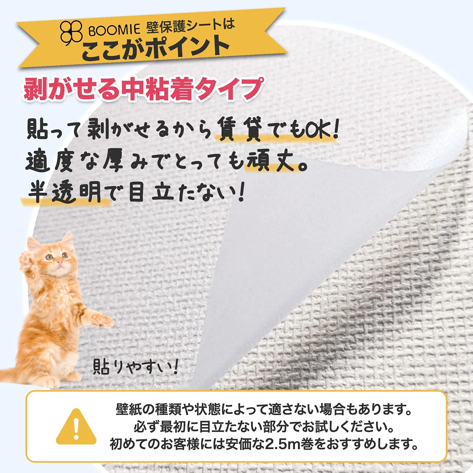 【数量限定】(44cm×2.4m) しつけ用品 ねこ 半透明 壁 防止 ひっかき シート 壁紙保護 猫 BOOMIEはがせる