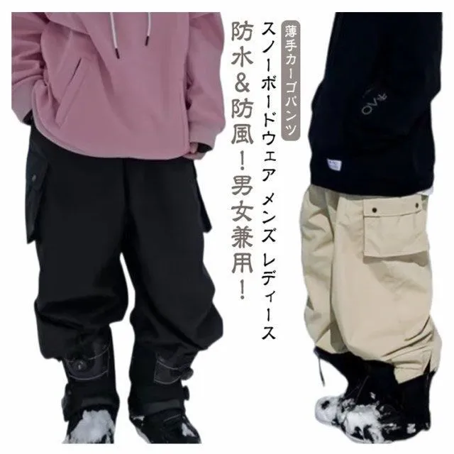 スキーパンツ スノーボードウェア スキーウェア メンズ レディース 薄手 春 秋 カーゴパンツ ロングパンツ ズボン 防水 カジュアルパンツ 防風 撥水 ボードウェア