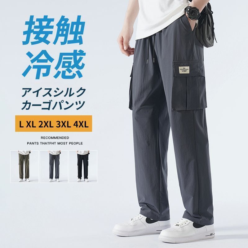 ■こちらの商品は沖縄・離島は配送料が異なります。 ご購入前にお知らせください。 お住まいの地域に合わせた専用ページを作成いたします。 カーゴパンツ メンズ 接触冷感 無地 アイスシルク ワークパンツ 作業着 イージーパンツ ゆったり 涼感 夏 ロング丈 シェフパンツ ズボン 薄手 ひんやり 涼しい ボトムス 夏パンツ おしゃれ