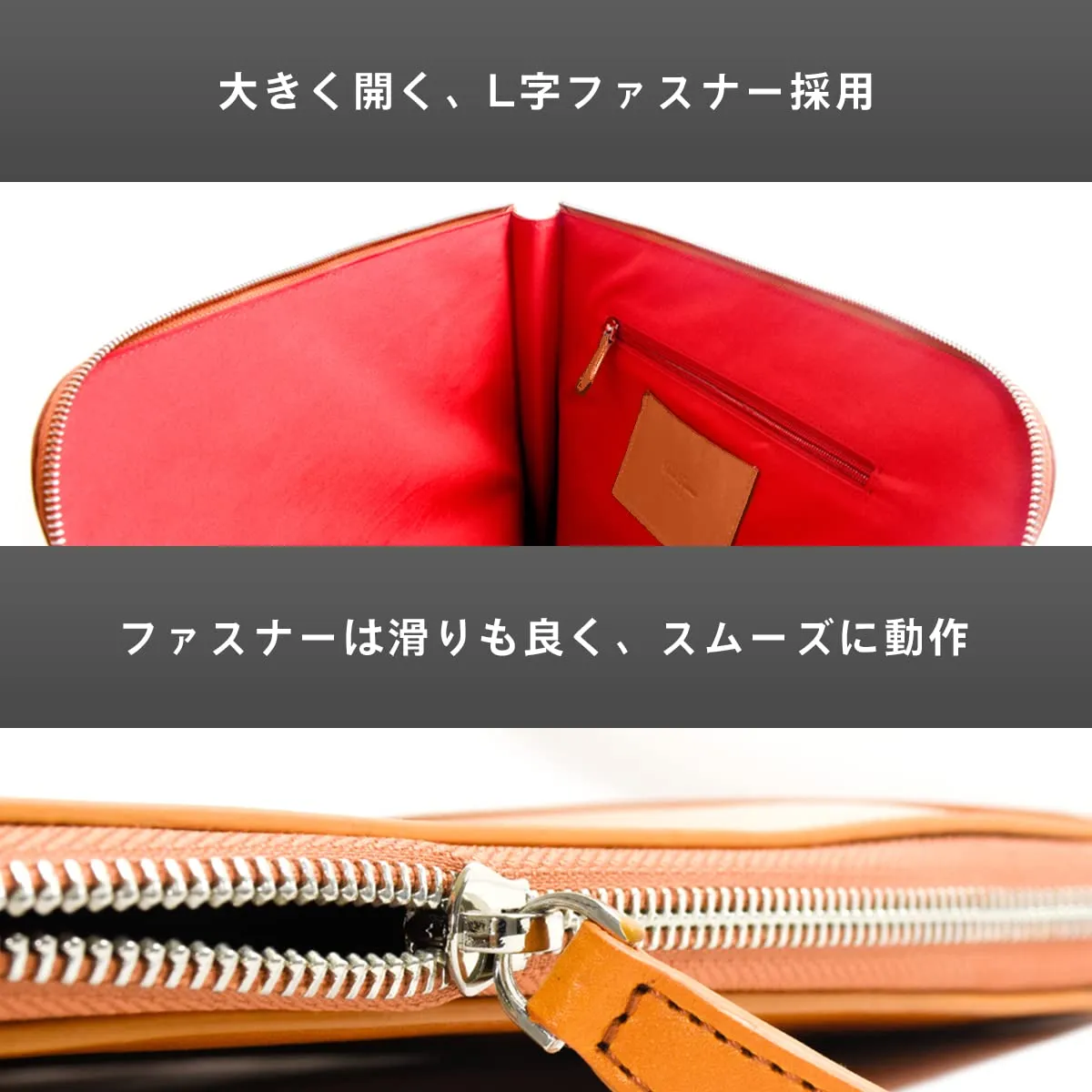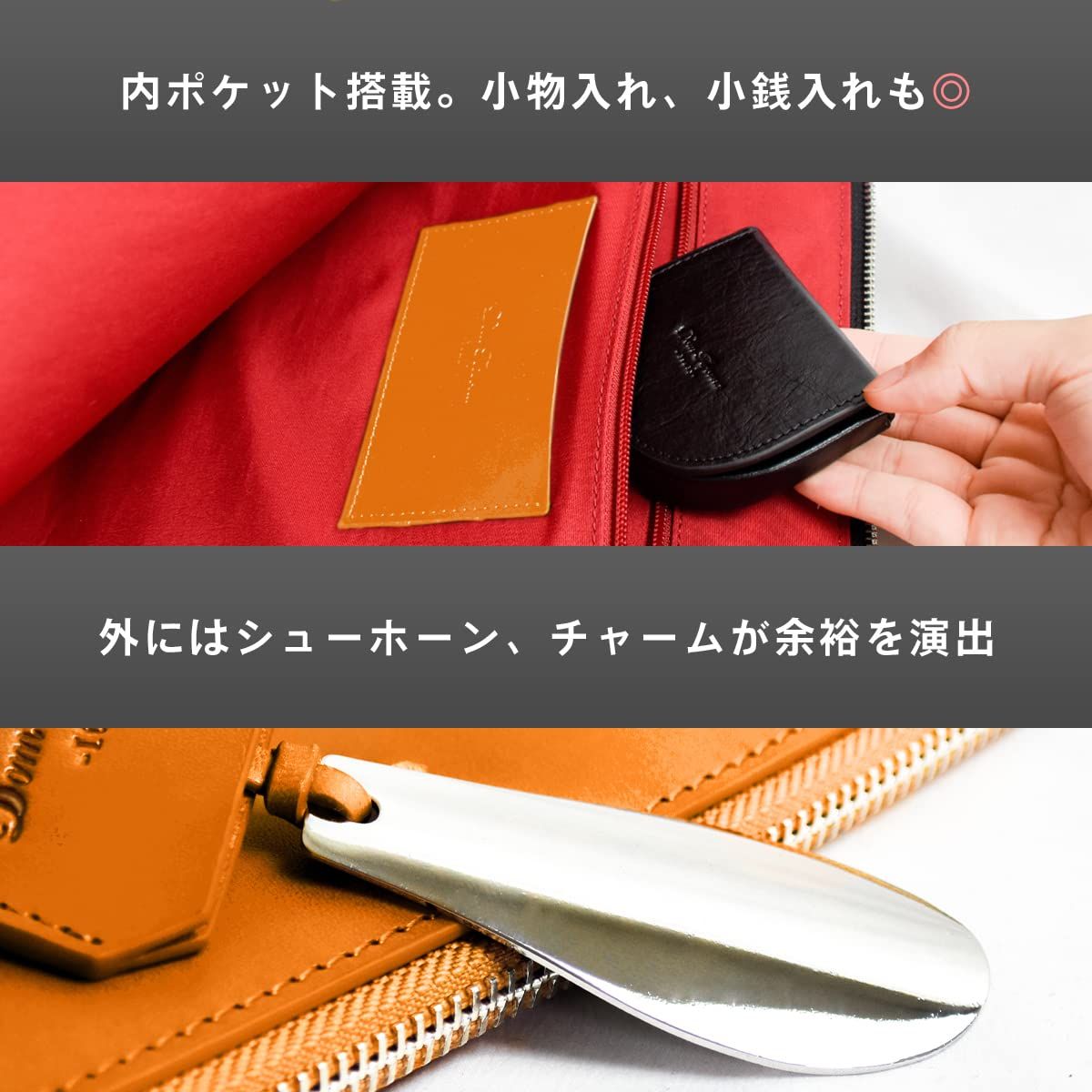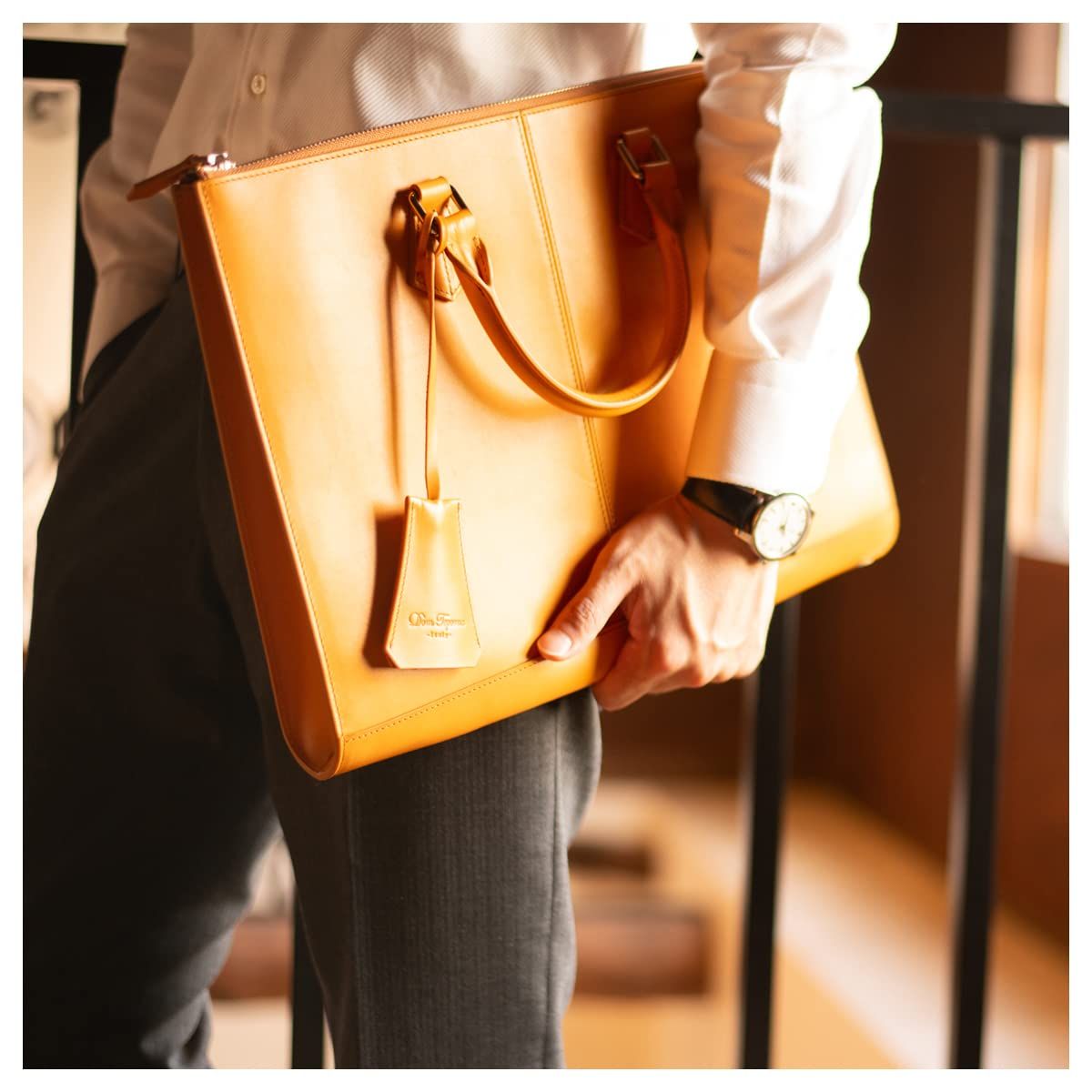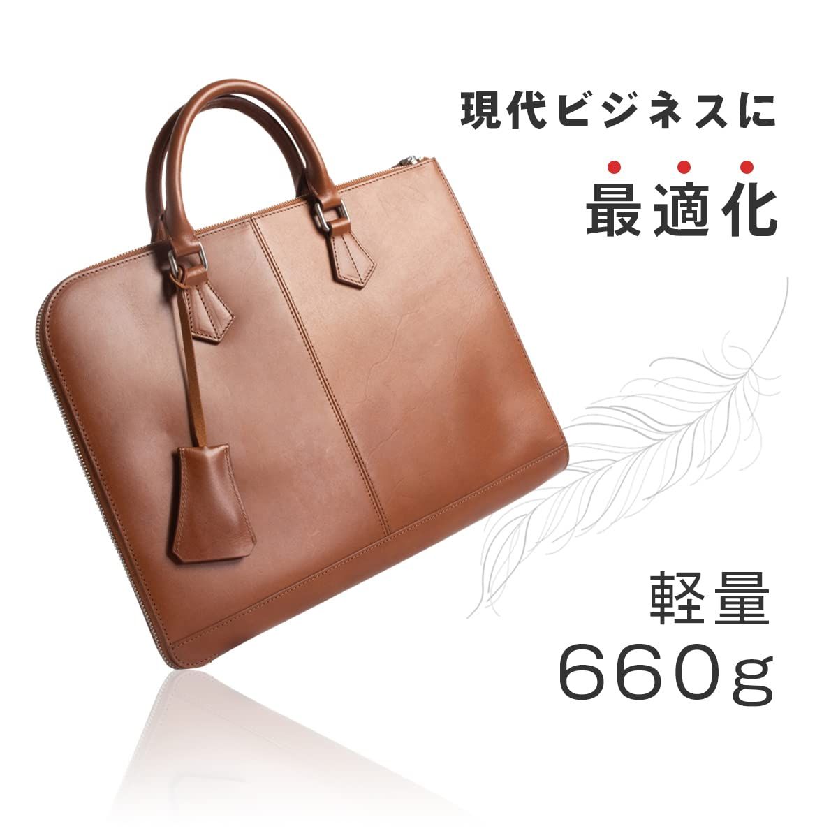 【薄型 ビジネスバッグ】デジタル化による新スタイルのビジネスバッグ。 コンパクトで洗練されたデザイン。現代ビジネスに最適です。 大きく開くL字ファスナーを採用しました。裏地まで抜かりないこだわり。 メイン収納にはPC・書類を。名刺・社員証・ICカード等を直接入れれる小ポケット。 内ポケットはファスナー付き。シューホーンチャーム付き。