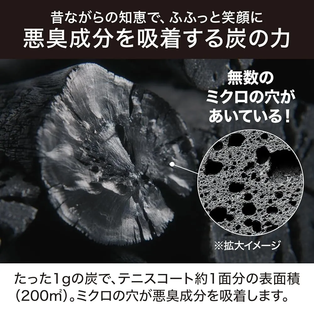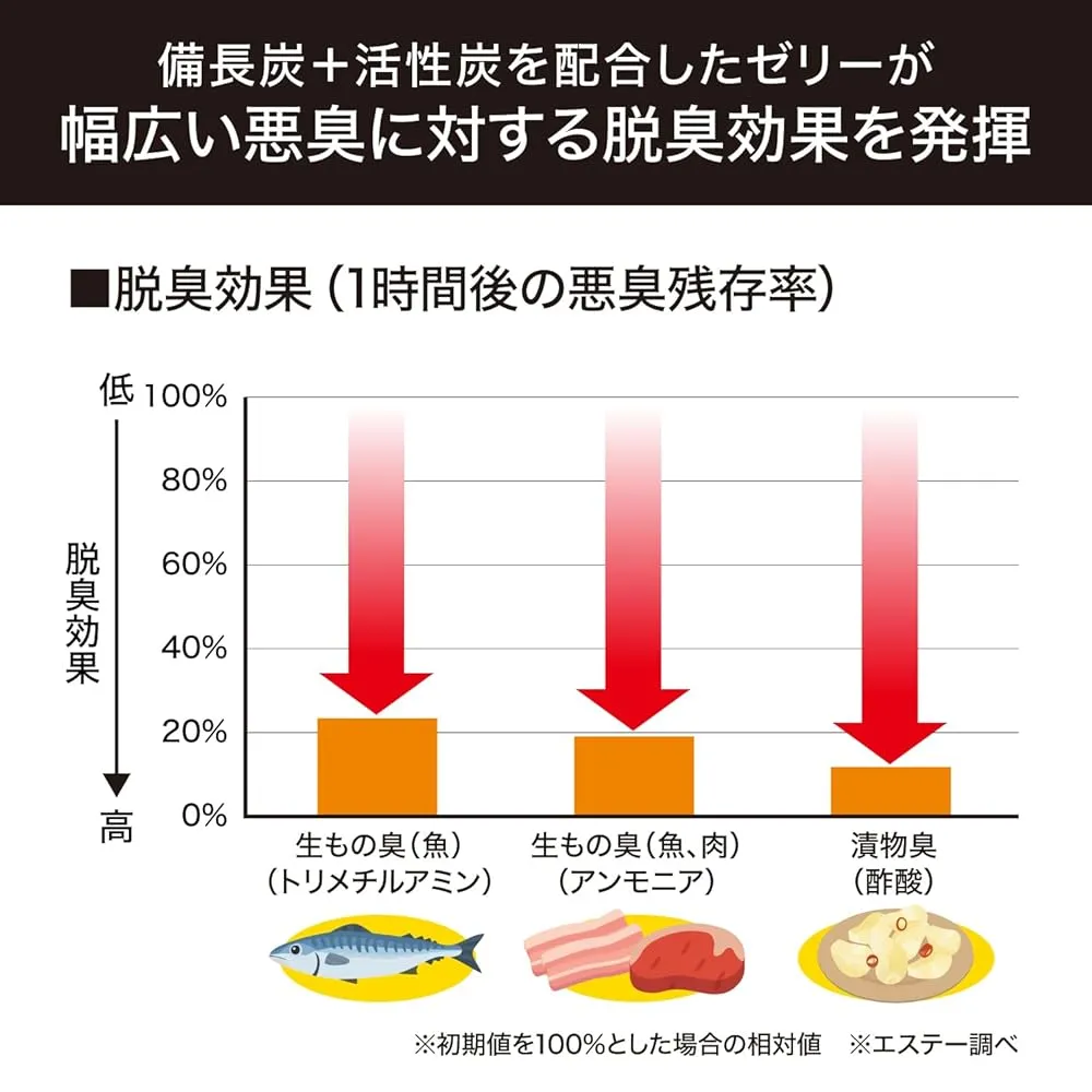 ●強力脱臭 当社独自のゼリー状の炭(強化備長炭+活性炭)