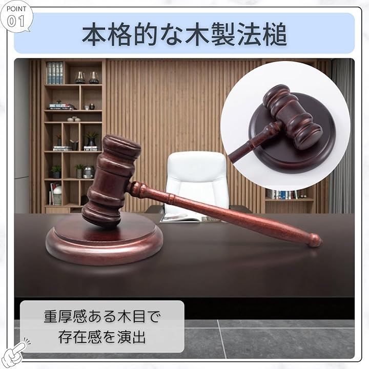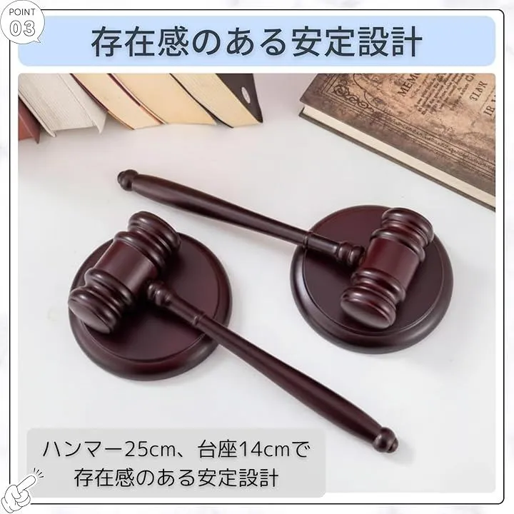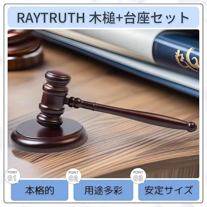 RAYTRUTH ガベル 裁判官 ハンマー 木製 オークションハンマー 木槌 小道具 競売 台座付き
