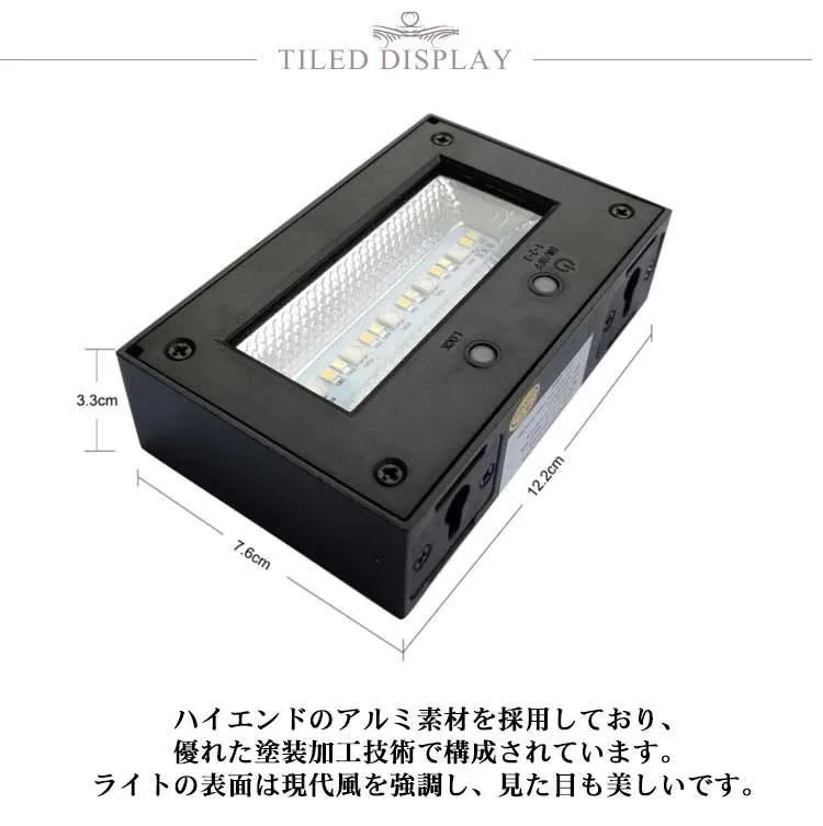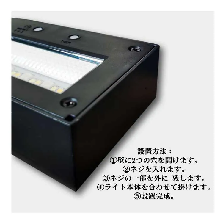 ■こちらの商品は沖縄・離島は配送料が異なります。 ご購入前にお知らせください。 お住まいの地域に合わせた専用ページを作成いたします。 商品仕様 - サイズ:F(12×7.6×3.3cm) - 本体重量:約0.275kg - 素材:アルミニウム合金、ガラス - カラー:ブラック 主な特徴 - ソーラー充電式:0.4Wソーラーパネル内蔵。日中、日当たりの良い場所に置くだけで自動充電。電気代不要でエコノミー。 - 長い点灯時間:満充電後、最大約68時間連続点灯可能。 - 明るさと雰囲気:50ルーメンの柔らかなオレンジ光。周囲を程よく照らし、眩しさを抑えた安心感のある照明です。 - モダンなデザイン:ハイエンドアルミ素材と優れた塗装技術により、洗練された現代風の見た目を実現。 - 屋外対応:玄関ポーチ、軒下、庭、バルコニー、廊下、倉庫、駐車場など、幅広い屋外シーンに適しています。 設置方法 1. 壁に2つの穴を開けます。 2. ネジを挿入します。 3. ネジの一部を外側に残します。 4. ライト本体をネジに合わせて掛けます。 5. 設置完了。 操作方法 1. 電源ボタンを3秒長押しで点灯。 2. 点灯後、電源ボタンを押すごとに「昼白色 → 電球色 → 虹色」の順に切り替わります。 3. 虹色モード時は、LOCKボタンを押すと現在の色が固定されます。 プラス配送料の目安 沖縄・離島 +2,000円