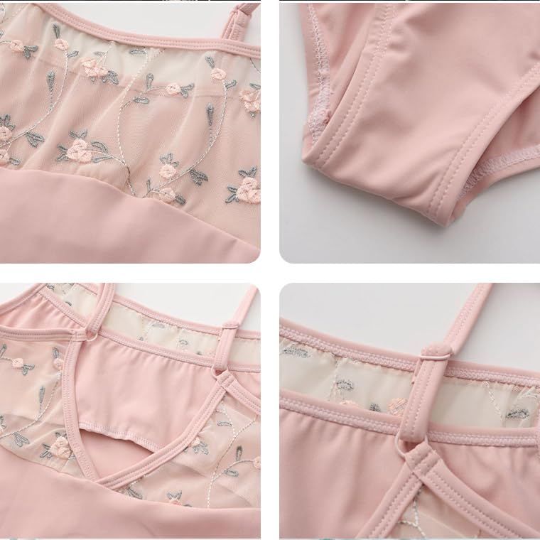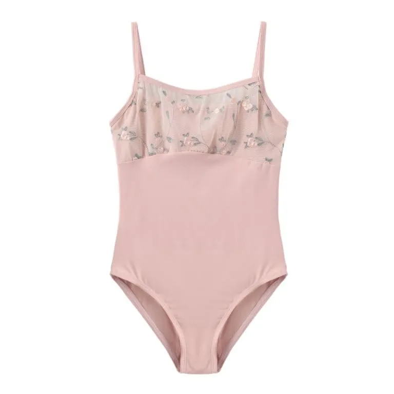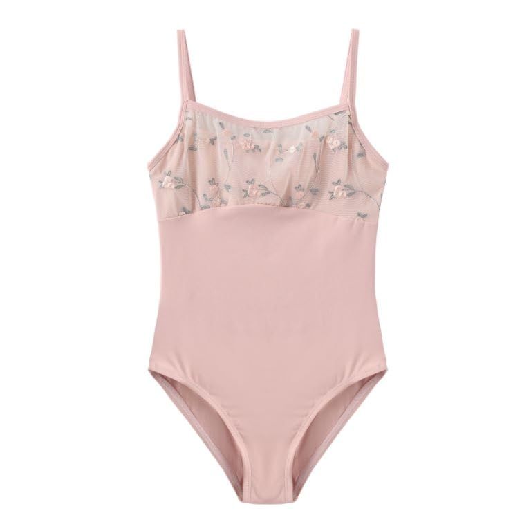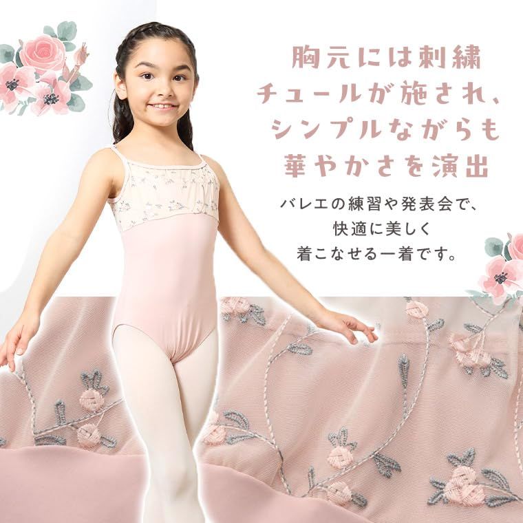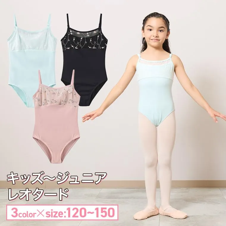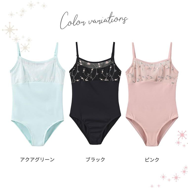[FairyMary] 肩紐アジャスター付き・胸元刺繍チュール バレエレオタード/ホワイト・ラベンダー・ピンク・ ブルー・ブラック/キッズ 子供 ジュニア 大人 ナイロン キャミソール シンプル