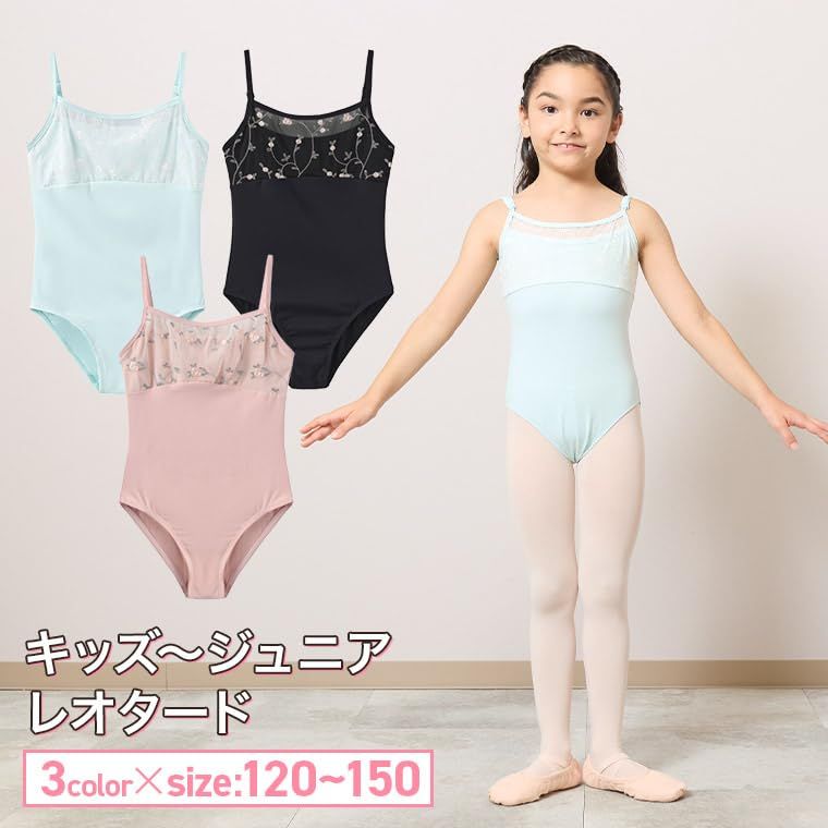 【FairyMary】 肩紐アジャスター付き・シンプルなバレエレオタード キッズジュニア対応(120150cm) うれしい3カラー展開。女の子が大好きな色ばかり集めました♪ <素材>ナイロン90%ポリウレタン10%