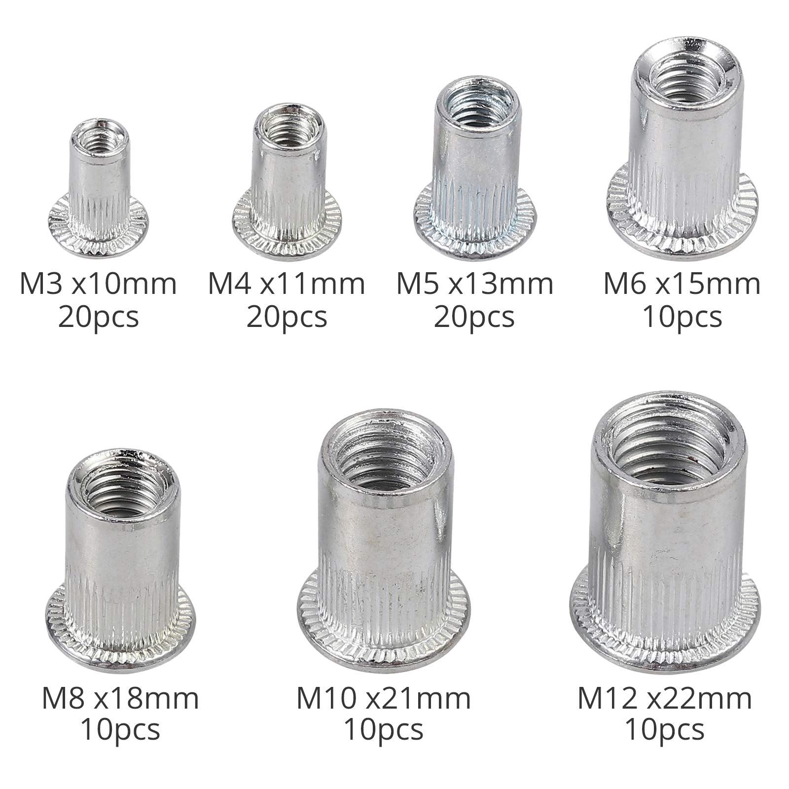 【七つの交換可能なガンヘッド】七つの交換可能なガンヘッド(M3 / M4 /M5/ M6 /M8 / M10 /M12)、100個のリベットナッ(20*M3、20* M4、20* M5、10*M6、10*M8、10*M10、10*M12)を付属しています。高品質の素材で、丈夫で耐久性があります。仕事のニーズを満たします。