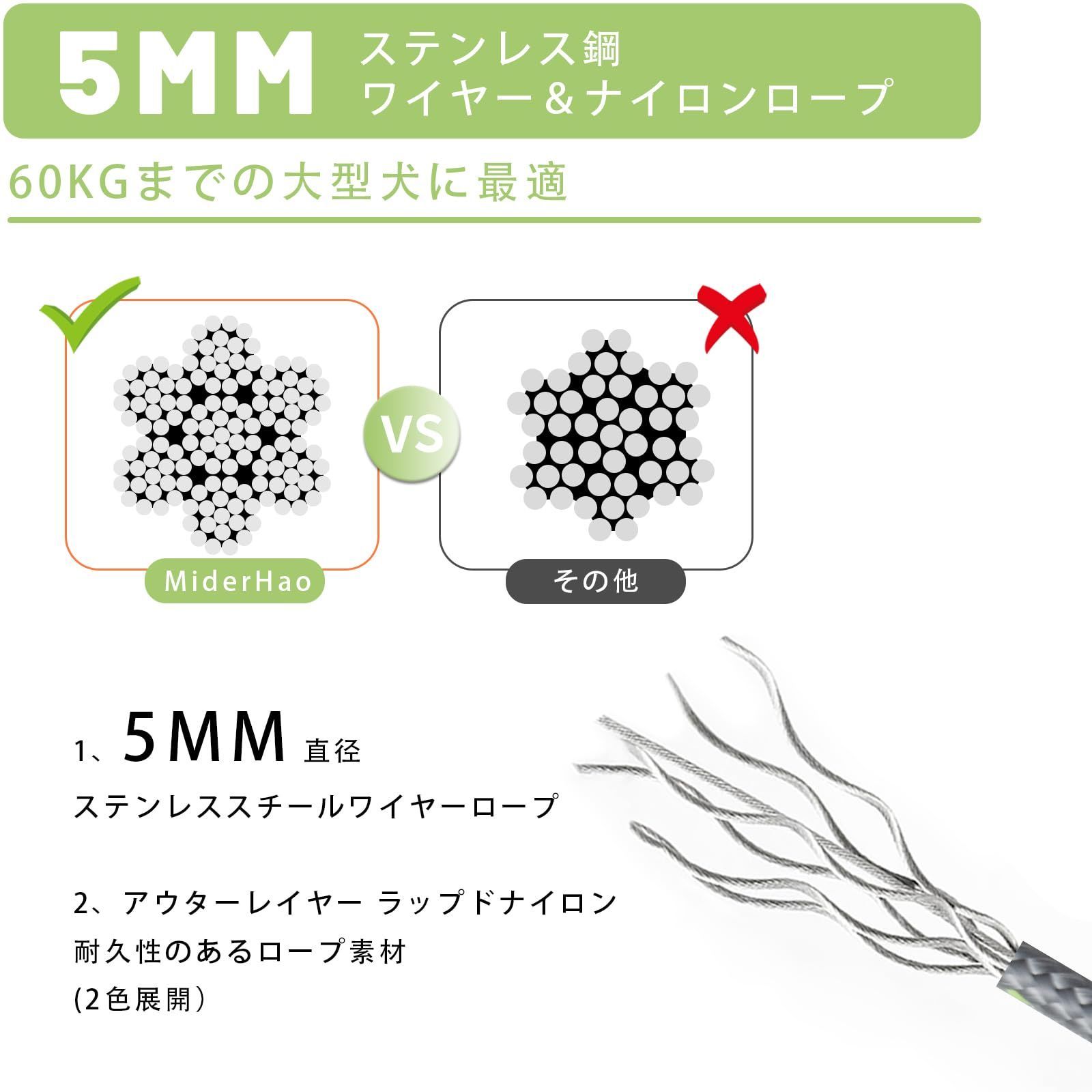 耐久性のある素材を使用しています:スチールケーブルは非常に強く、柔らかいPVC保護チューブに包まれ、耐久性、防錆、高強度抗噛み、犬に引き裂かれることは容易ではなく、より長い期間使用することができますの