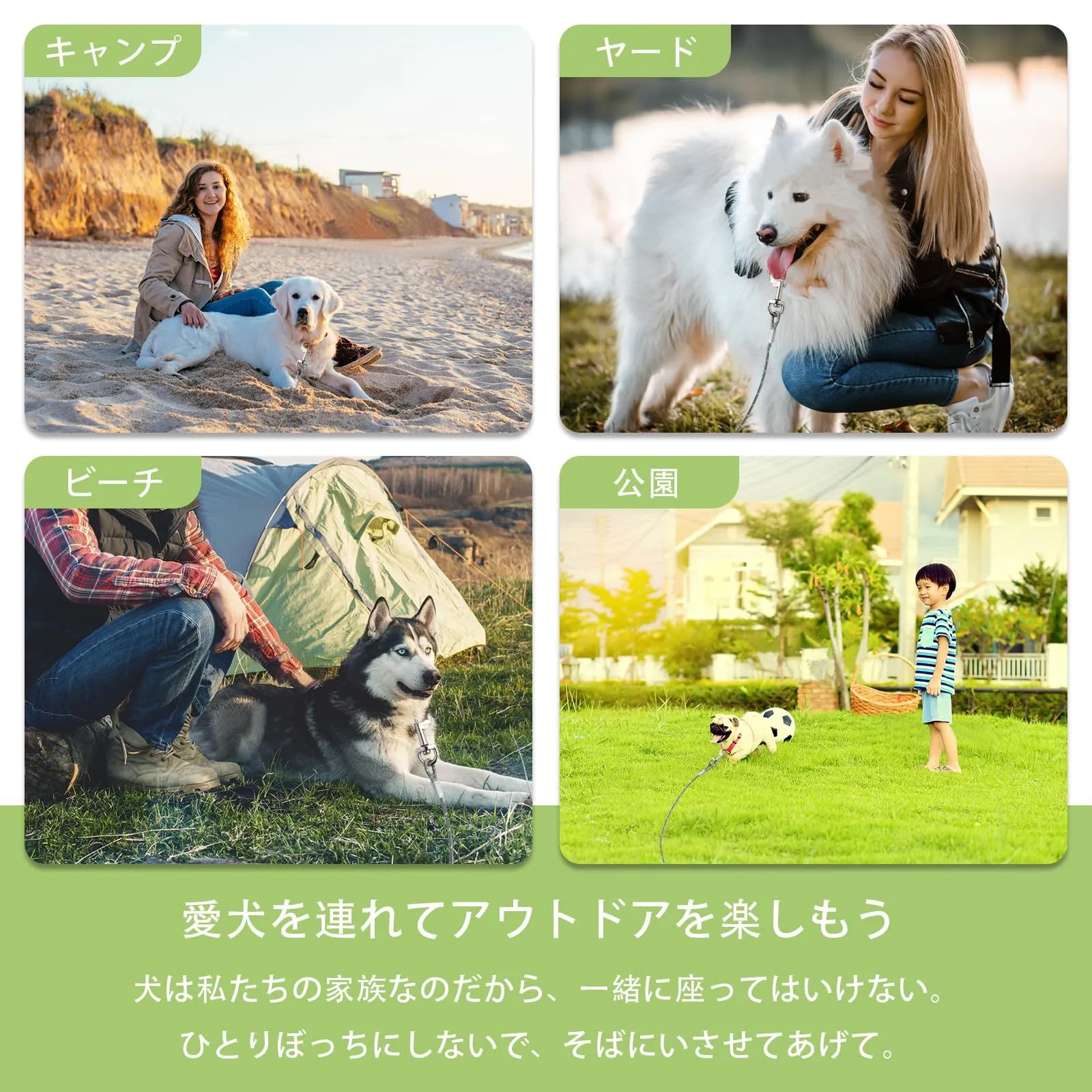 広い適用範囲:キャンプ、公園、中庭、庭などの屋外活動では、この犬用ケーブルを使ってペットを保護することができます。持ち運びに便利で、キャリングバッグに収納できます。