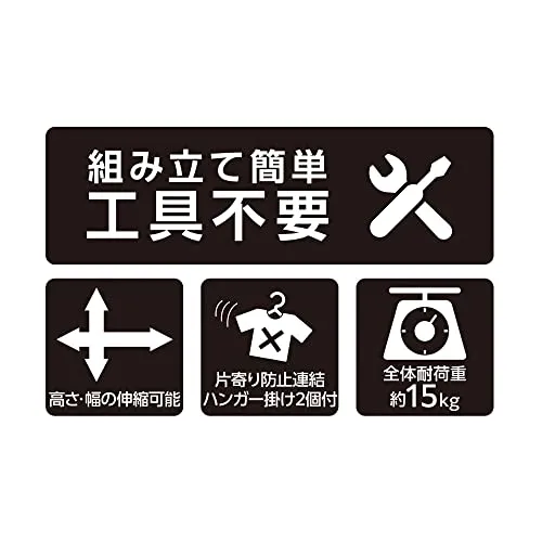 取り付け、取り外しが簡単にできる片寄り防止連結ハンガー掛け2個付。
