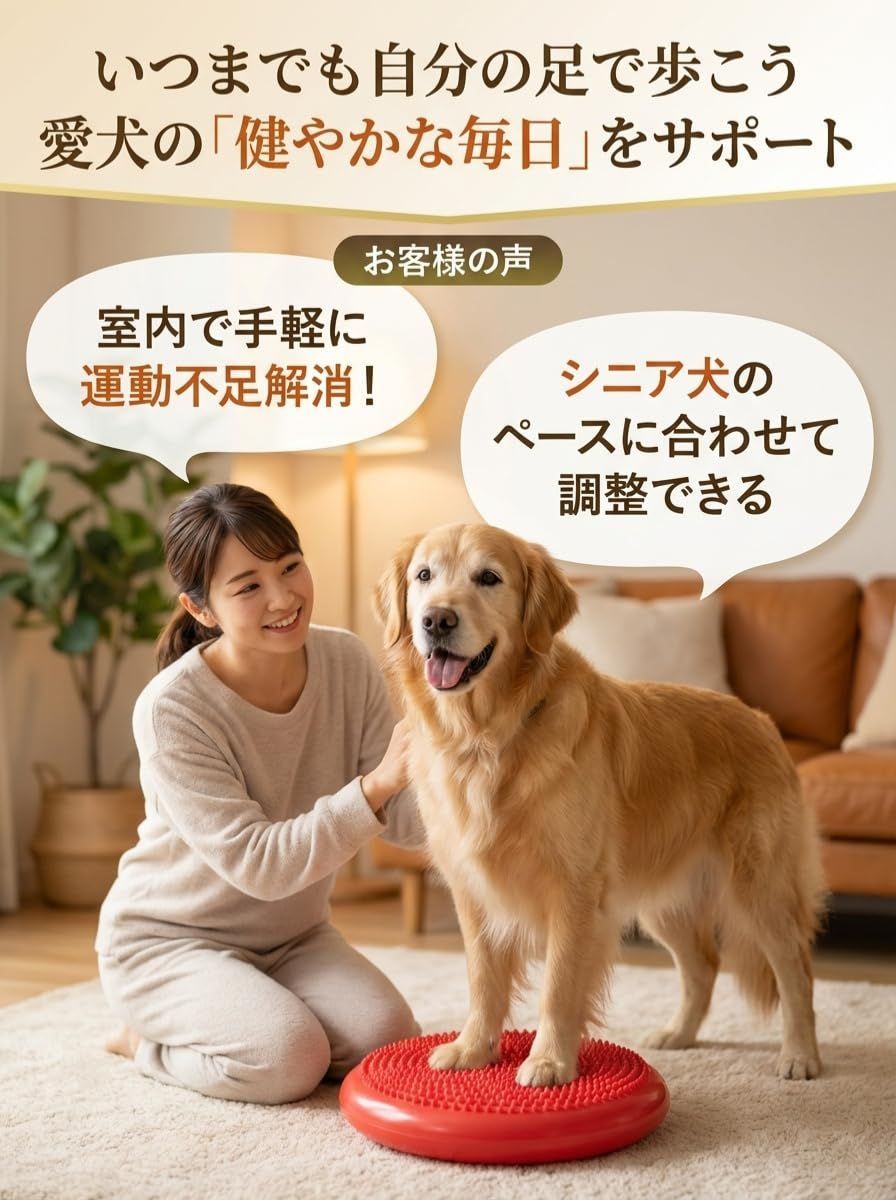 【様々なワンちゃんに対応】 小型犬から大型犬、子犬からシニア犬まで、様々な犬種や年齢のワンちゃんに対応します。前脚を乗せて立位姿勢を維持したり、前脚を乗せて座位姿勢を保つトレーニングなど、多様なトレーニング方法を実践できます。これにより、愛犬のニーズに合わせたトレーニングが可能です。