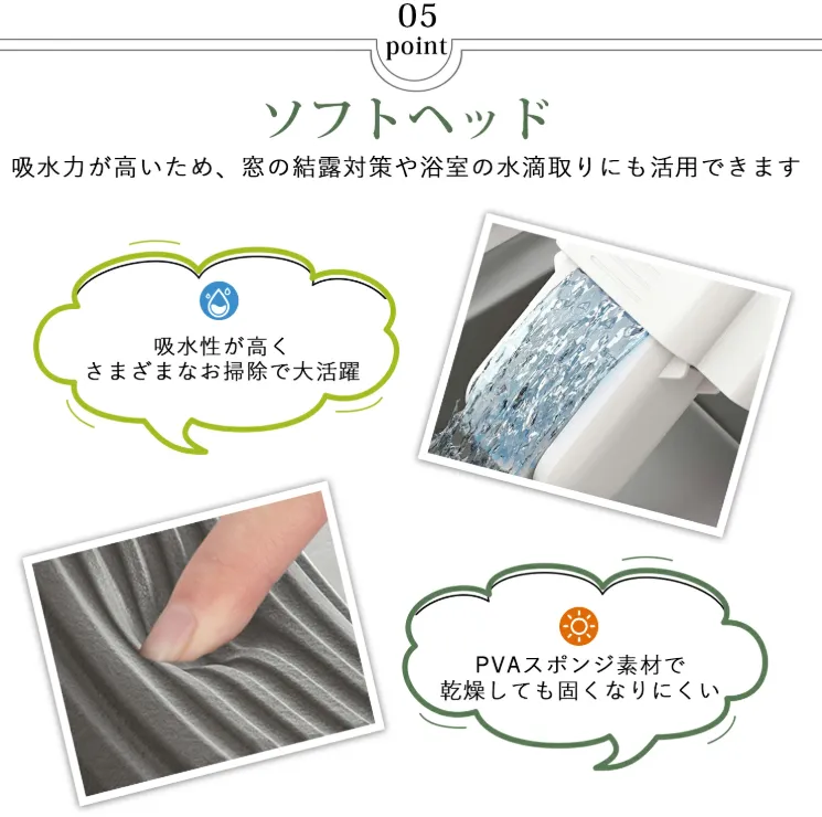 ◆ 用途 浴室やキッチンの水滴取り 窓ガラスの結露除去 フローリングや隙間掃除 & ペットの毛や小さなゴミ取り