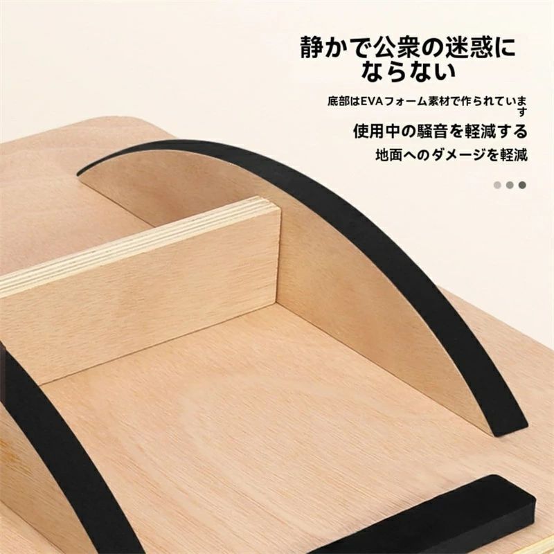 【商品特徴】 * バランスと体幹の強化 体幹の強化、手足の協調性向上に役立ちます。習慣化しやすい設計で、末永い健康サポートを実現します。足の運動を通じて、血行促進と脳の活性化にもつながります。 * 静音・コンパクト設計 シンプルな構造で動作音が非常に静かです。テレビ視聴時や夜間の使用も快適。床を傷つけず、マンションや集合住宅でも気兼ねなくお使いいただけます。 * 簡単・使いやすい デスクワーク時の足置きとして、あるいは在宅勤務時の運動不足解消に。無意識のうちに足を動かせるため、座りながら手軽にエクササイズが可能です。血行促進により、肩や首のこり軽減も期待できます。 * 天然木の温もり 天然木を使用し、職人が一つひとつ手作業で削り上げています。手に取った際の木の香りと、なめらかな肌触りをお楽しみください。 * 幅広い用途 バランストレーニングはもちろん、腕立て伏せやプランクなどの補助器具としても活用可能。特定の部位を鍛えるというより、こり固まった関節や筋肉をほぐし、しなやかにする健康器具です。