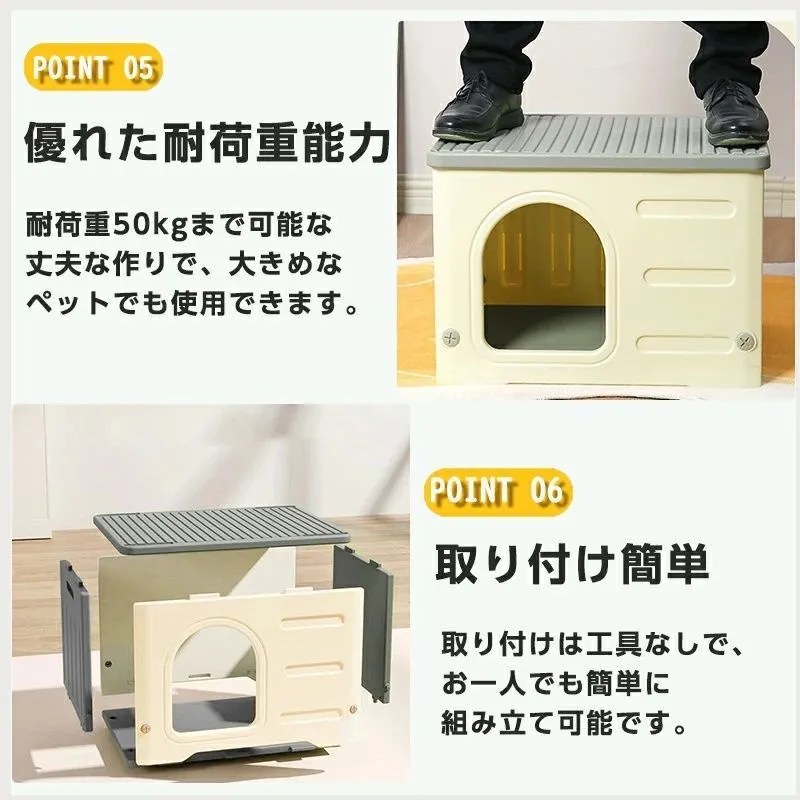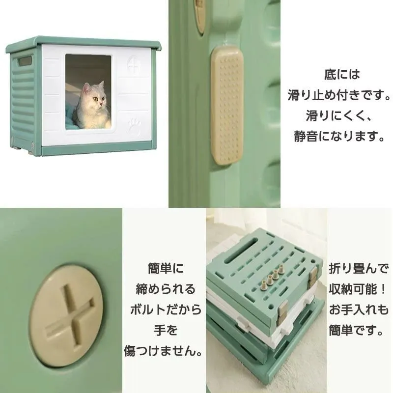 猫小屋 犬小屋 ペット用 屋外 屋内 室外 室内 防寒 防風 防雨 通気性 換気 プラスチック 組立簡単 丸洗い 洗える 座布団付き 小型犬 中型犬