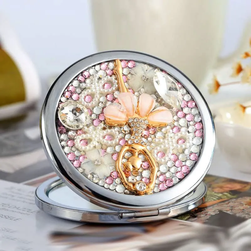 【贈り物に最適】キラキラ 両面のポケットミラーで、異なる種類のストーンと人工パールが施されており、非常に華やかです。取り出すとすぐに会場の注目を集めます。両親に、おじいちゃんやおばあちゃんへ。友達の誕生日に人気のプレゼント。結婚する友人へ。転勤や退職で離れる同僚へ。お世話になった先輩や先生へ。 折りたたみ式で高級感のあるコンパクトミラーです。ギフトボックスが付属しているため、大切な方への特別な贈り物として、誕生日や感謝の気持ち、愛の告白などにです。