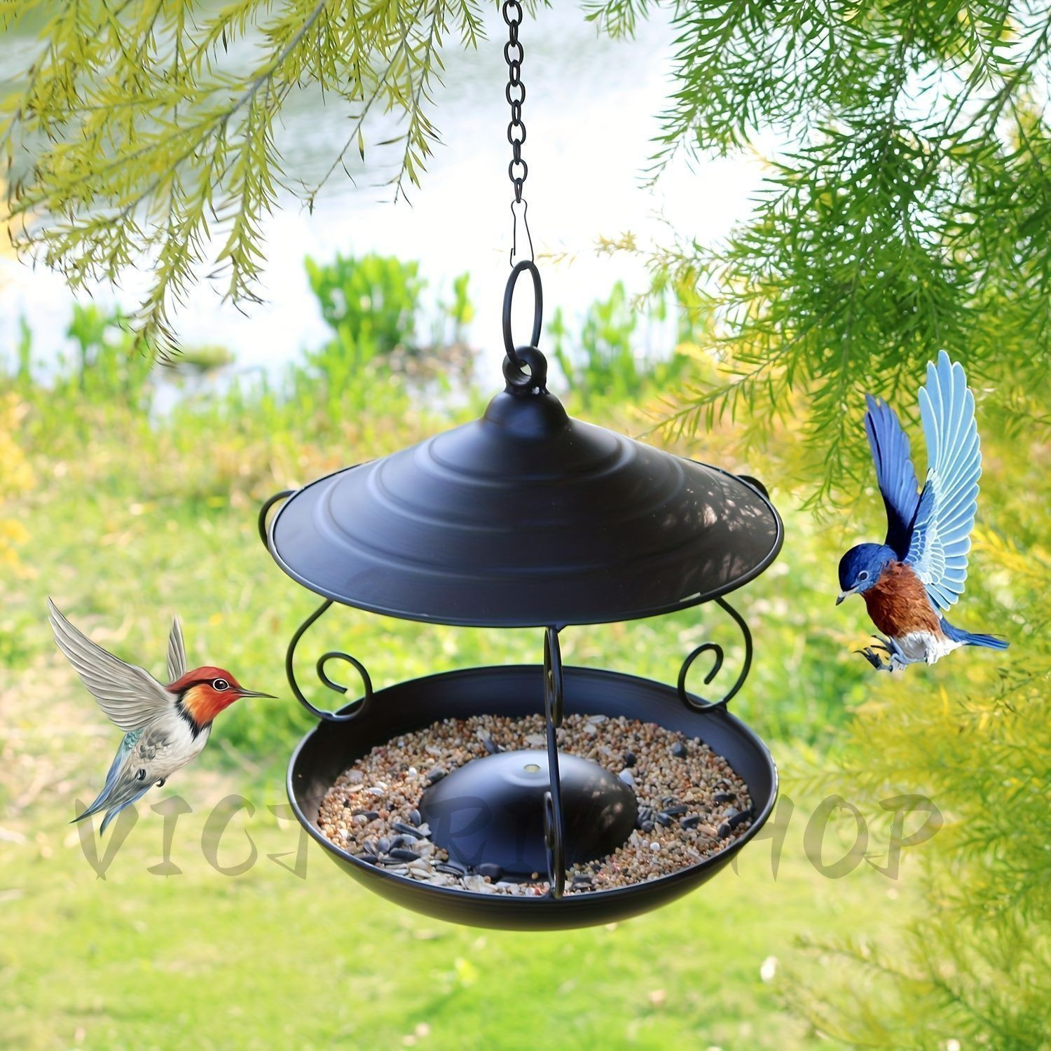 【新品・未使用】吊り下げ バードフィーダー 小鳥 野鳥 用 給餌器 餌箱 餌台えさ置き 簡単取り付け モダン シンプル 屋根付き 餌入れ 鳥 ガーデンオブジェ