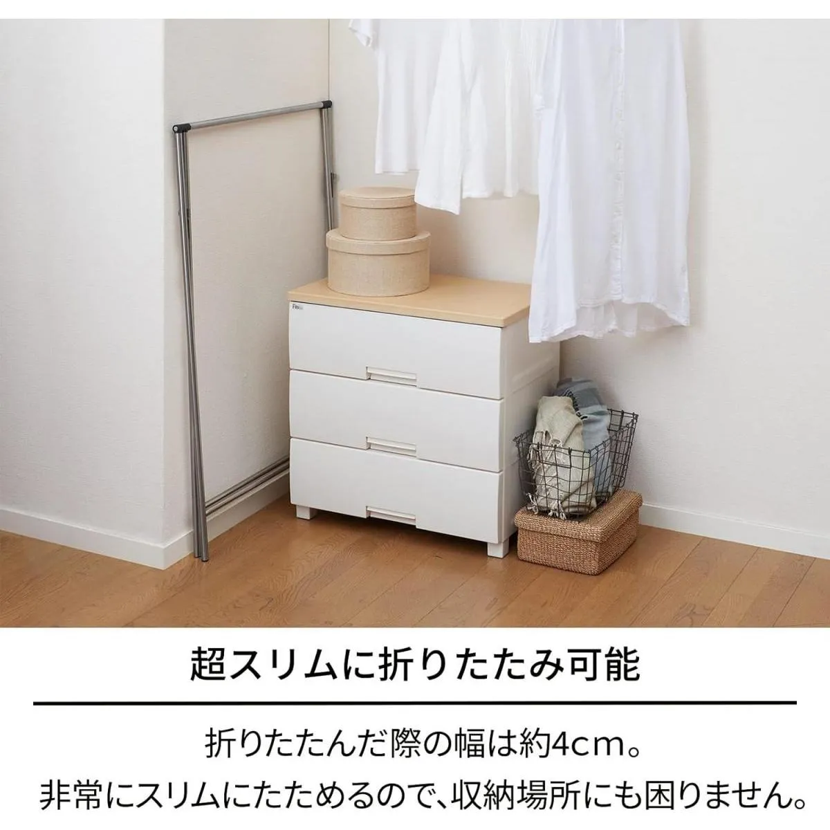 シンプルなデザインなので出しっぱなしにして洋服掛けとしても使用できます。