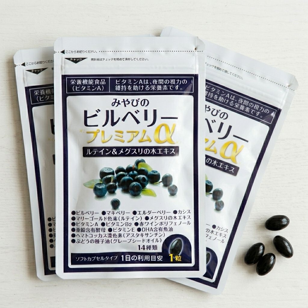 ビルベリープレミアムα (30日分 30粒) 3袋セット アイケア サプリメント 栄養機能食品 ビタミンA MIYABI 正規品 送料無料 追跡可能メール便