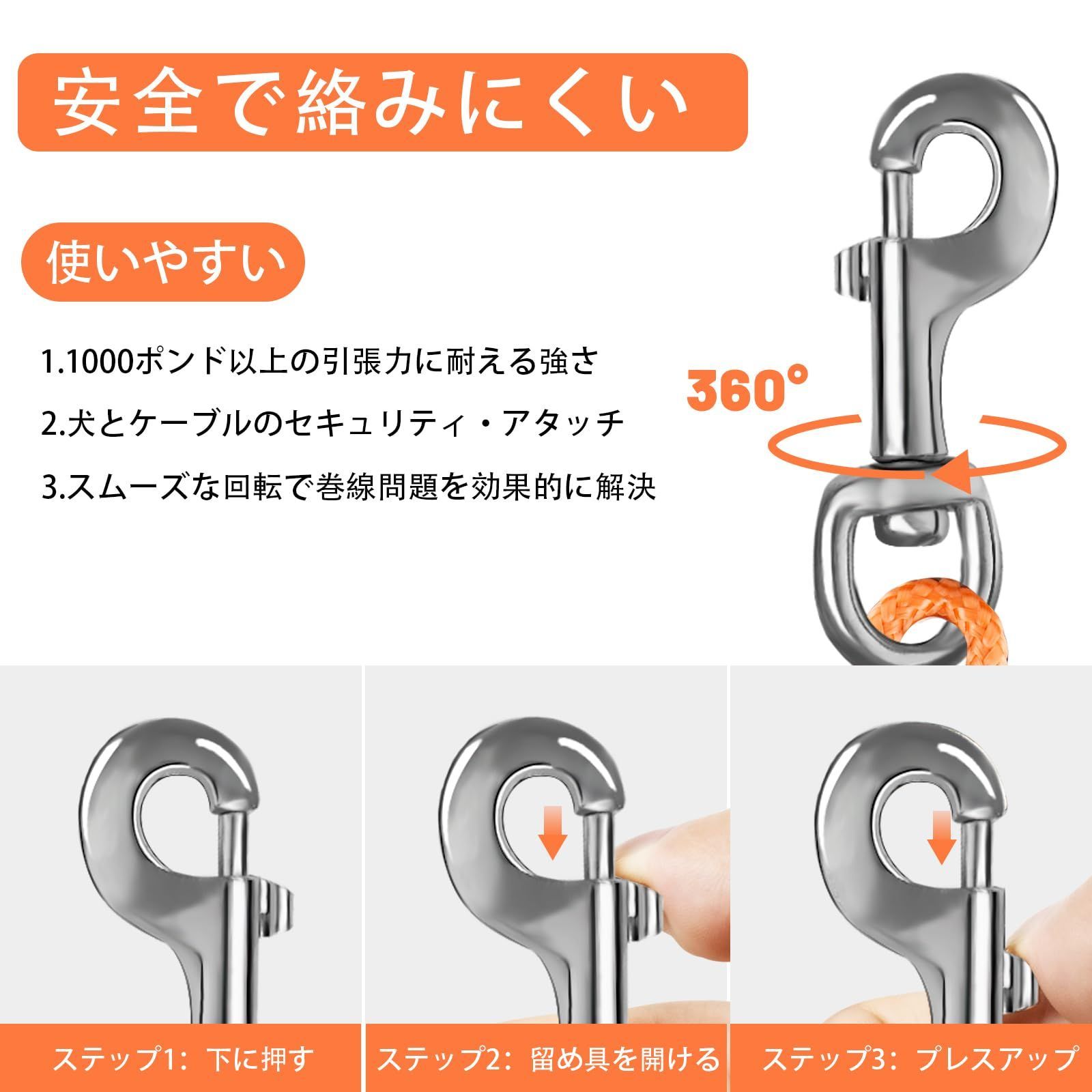 アドバンスド・クリップ:回転クリップは360°回転することができ、あなたの犬が絡まることなく移動するためのより多くのスペースを提供します。また、ペットがケーブルから外れて危険な目に遭うことも防げます。