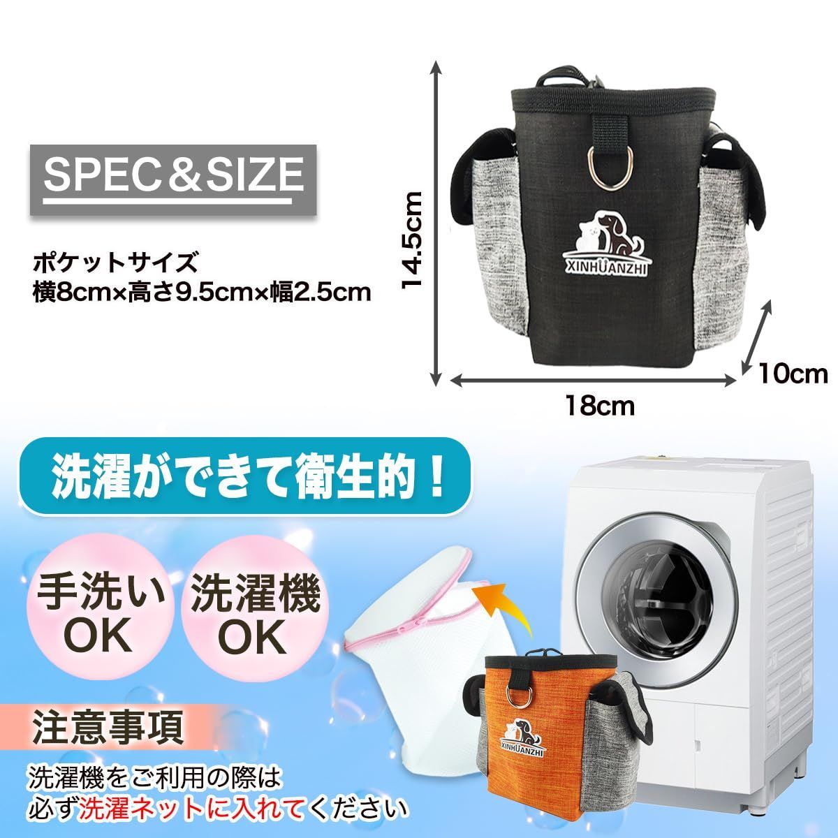 Micolora トリーツポーチ 犬 おやつ入れ おやつポーチ 小さめ 巾着 両サイドポケット (オレンジ M)