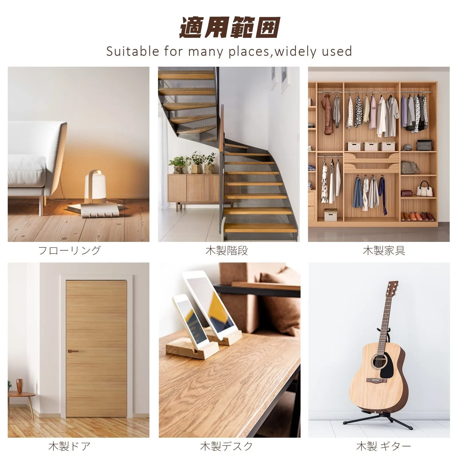 【適用範囲】この補修キットは、木製の床、木製のドア、家具(キャビネット、椅子、ベッド、クローゼット、本箱、机、木製工芸品など)の傷、擦り傷、変色などの木材のすべてのタイプの損傷を修復するのに役立ちます。