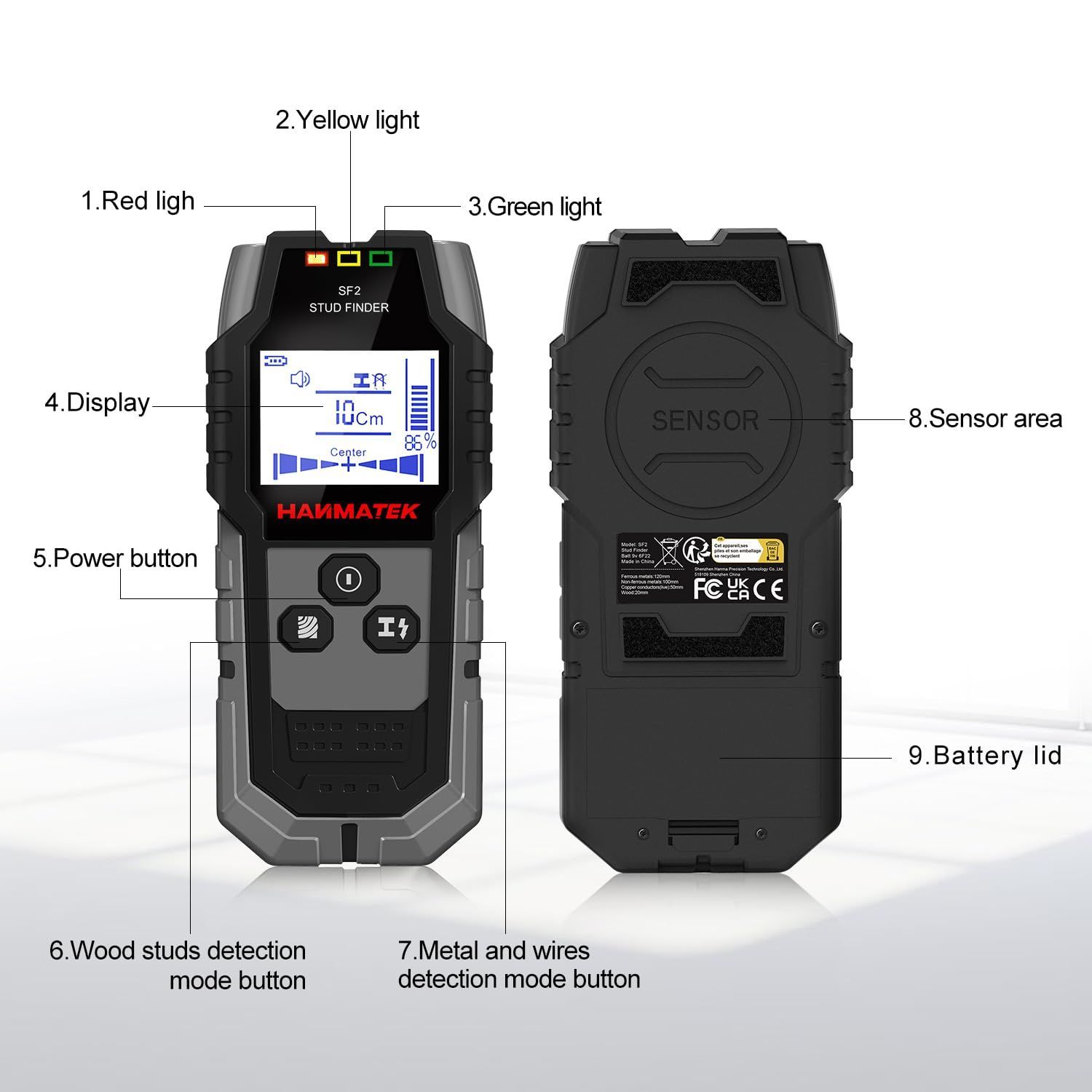 HANMATEK 下地探し 下地センサー 下地チェッカー 壁うらセンサー 深度距離表示 五合一アップグレード木材精密モード両頭ボルト探索ツール、金属中心縁、両頭ボルトと交流電線、壁パイプ位置決め器に使用 (SF2)