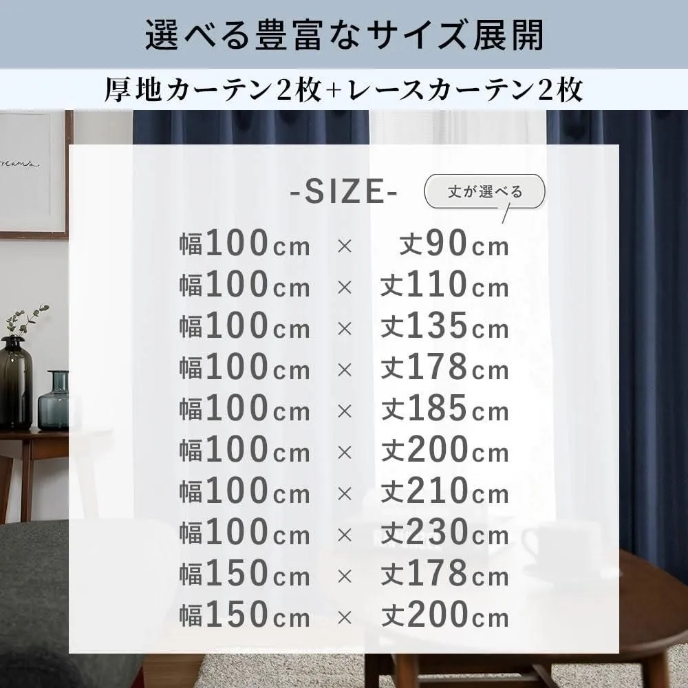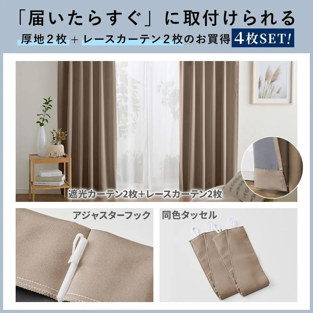 【新生活の準備に|これ1つで窓辺が完成する4枚セット】 厚地カーテン2枚とレース2枚の計4枚をセットでお届け。 別々に買い揃える手間がなく、届いたその日から新しいお部屋での生活をスタートできます。 統一感のあるデザインで、急なお引越しや模様替えにも最適です。