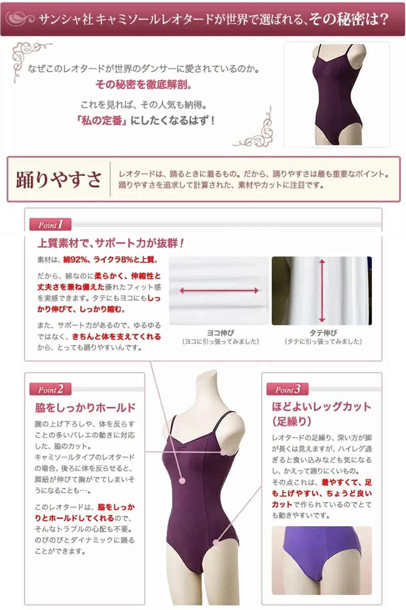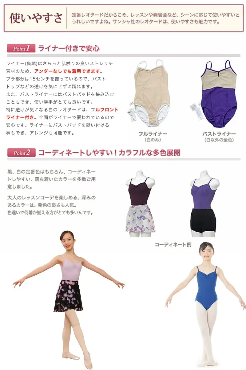新品 バレエレオタード大人【サンシャ】C237C キャミソールレオタード ブラライナー ブラック 4(M)145cm