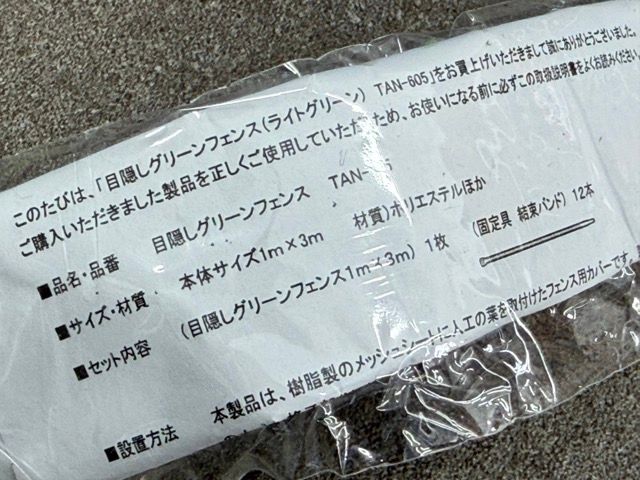 未使用 目隠しグリーンフェンス TAN-605 ライトグリーン 1m×3m ポリエステルほか インテリア 住宅設備 / 516319 在★3