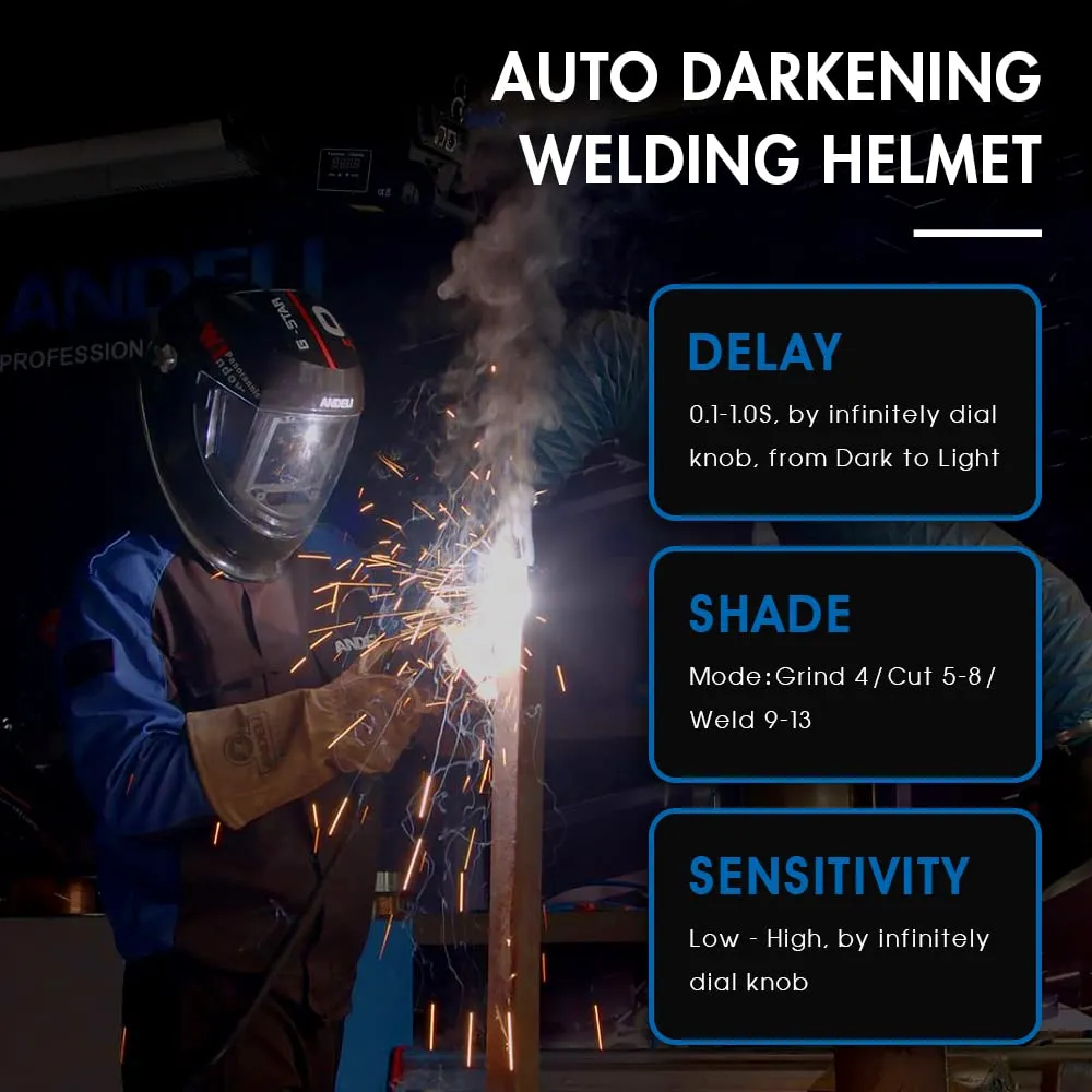 溶接面 自動遮光 自動感光式溶接マスク 側面も見える広視野 4アークセンサー 自動フィルター 調整可能なシャドー範囲5~8/9~13 ワイドビュー