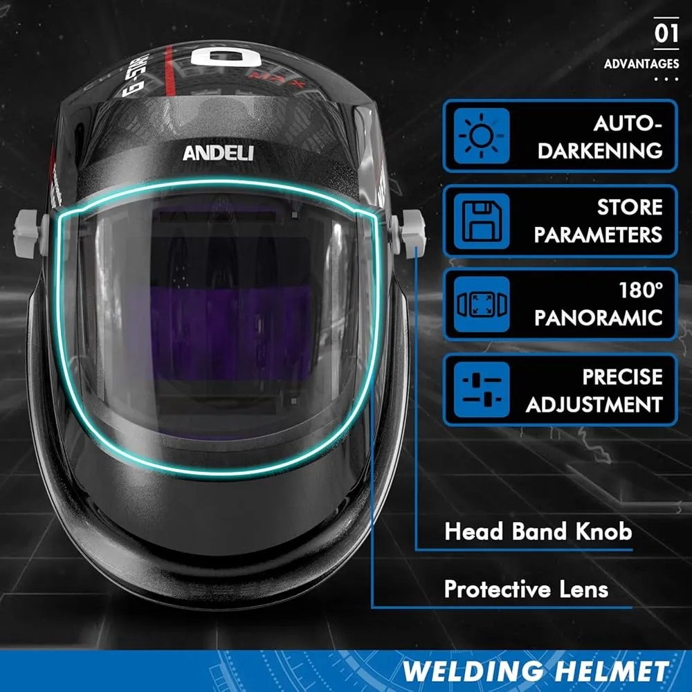 :WELD/GRIND/CUT に使用され、TIG MIG MMA、研削機能付きプラズマアプリケーションに最適。及び半球形エンクロージャはDIN16レベルの UV と赤外線保護も備えています。
