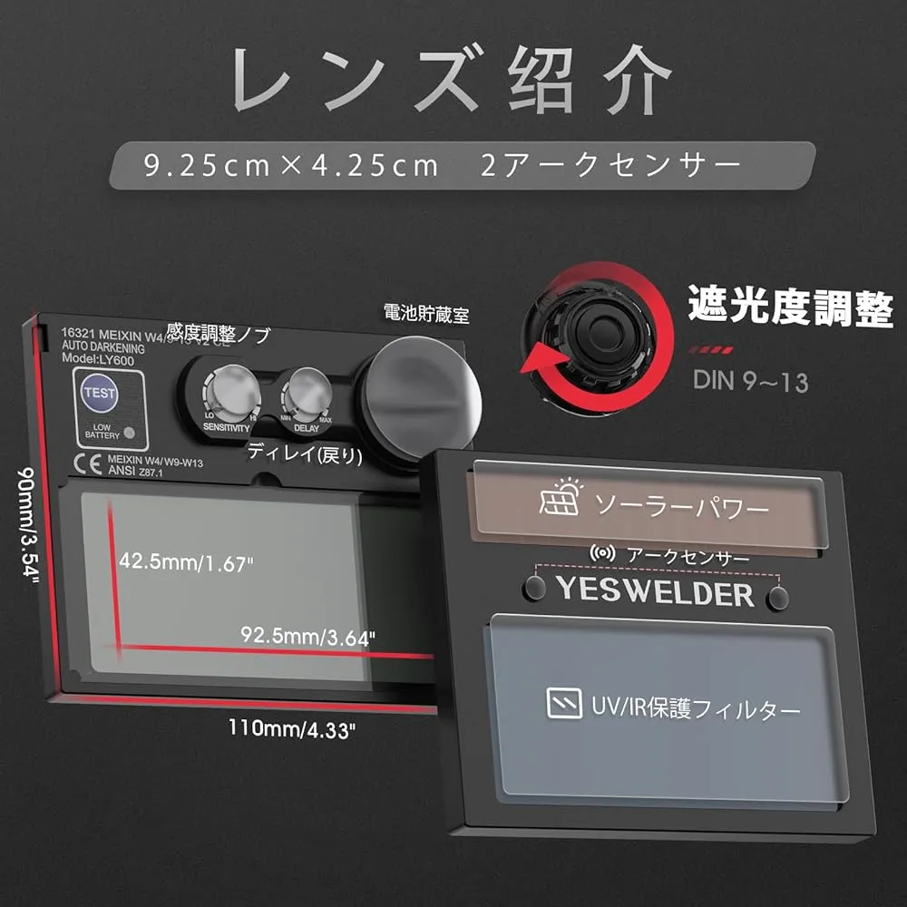 溶接面 本当の色を映す ソーラーパワー 自動遮光溶接面 1/30000秒 遮光度4/5-9/9-13 TIG MIG ARC溶接に対応溶接ヘルメット