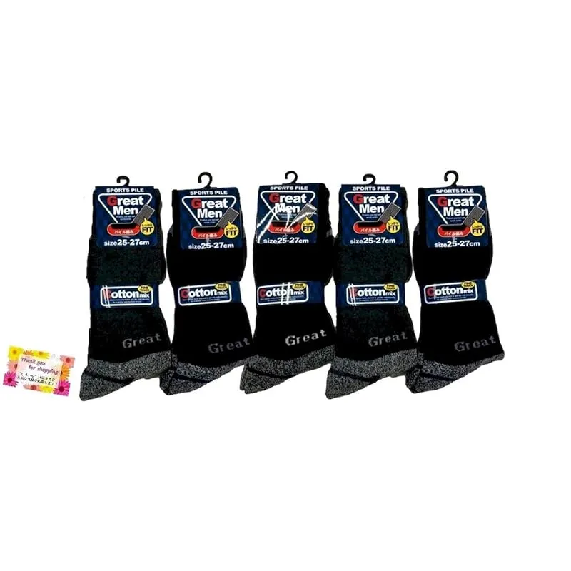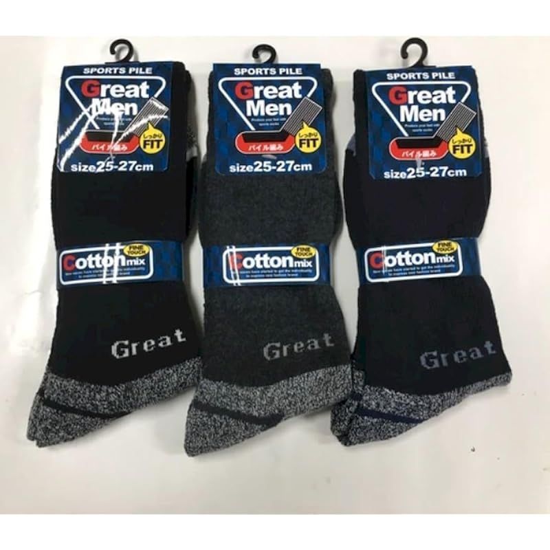 【爽やか綿混素材でやさしくて快適!】 紳士 綿混 底パイルソックス Great Men クッション性があり足をしっかりガード 様々なスポーツシーンに ハイキングや登山用にも 25-27cm 3色ランダム