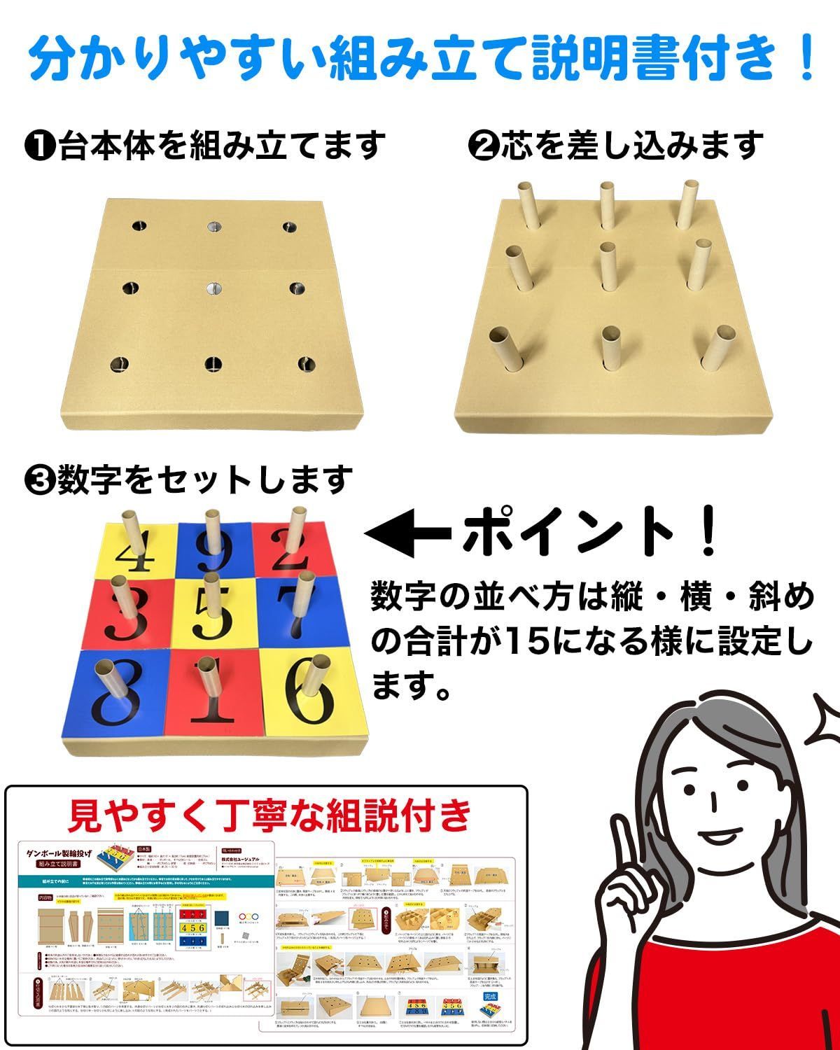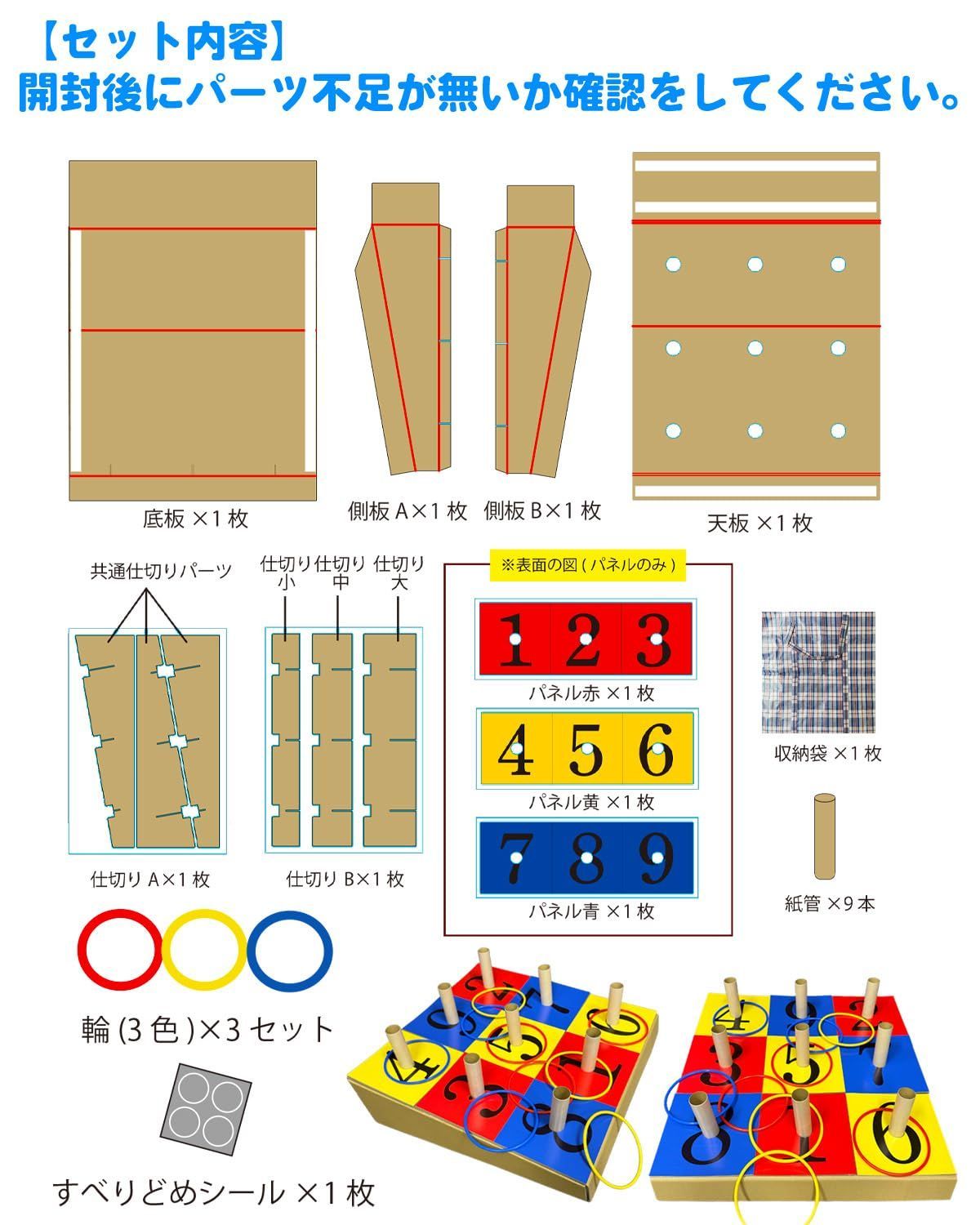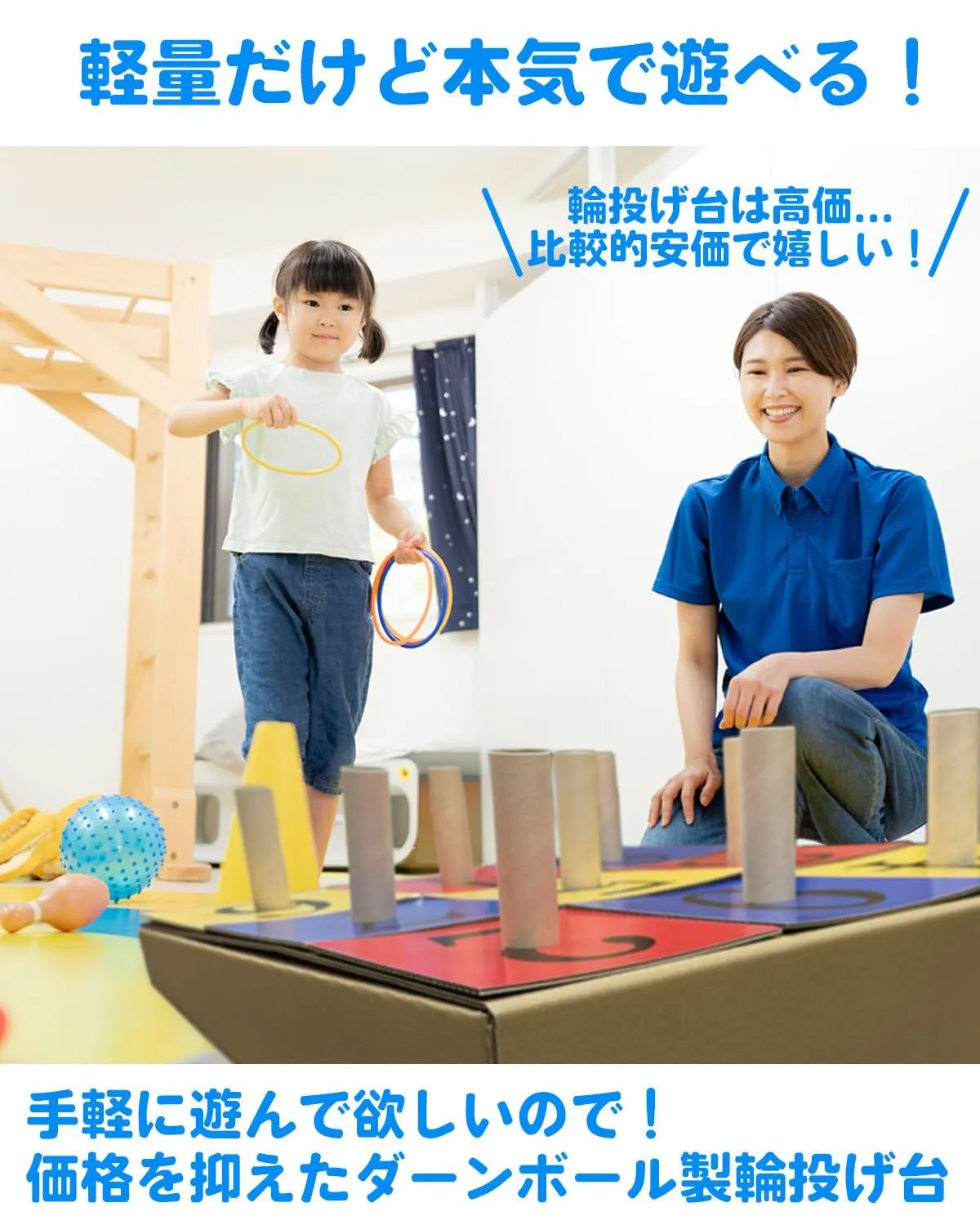 【軽量なダンボール製】本体台は段ボール製のため、木製などの一般的な商品よりも大幅に軽量化を実現しました!輪っかは耐久性のあるPP製♪手軽に遊ぶことができます。