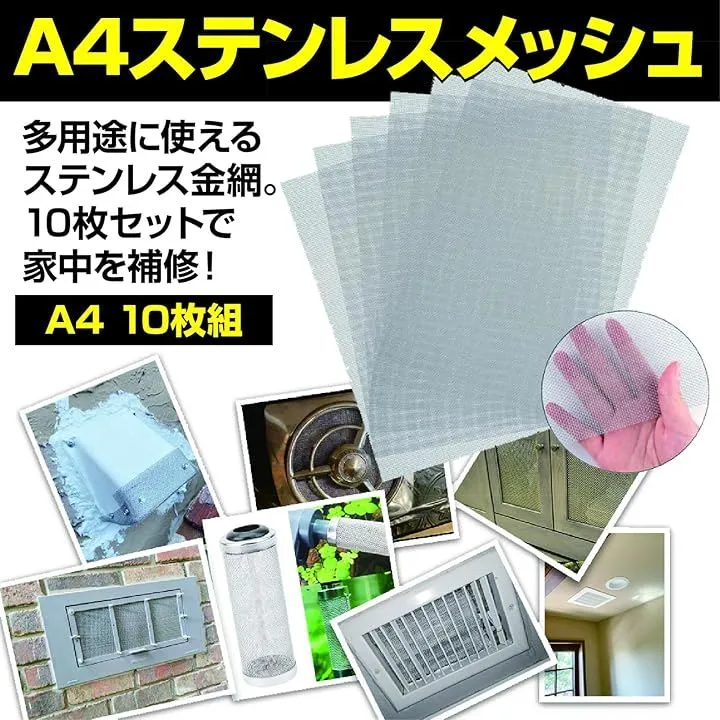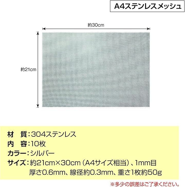 ステンレスメッシュの利便性を追求した、使い勝手の良いA4サイズ10枚セットです。
