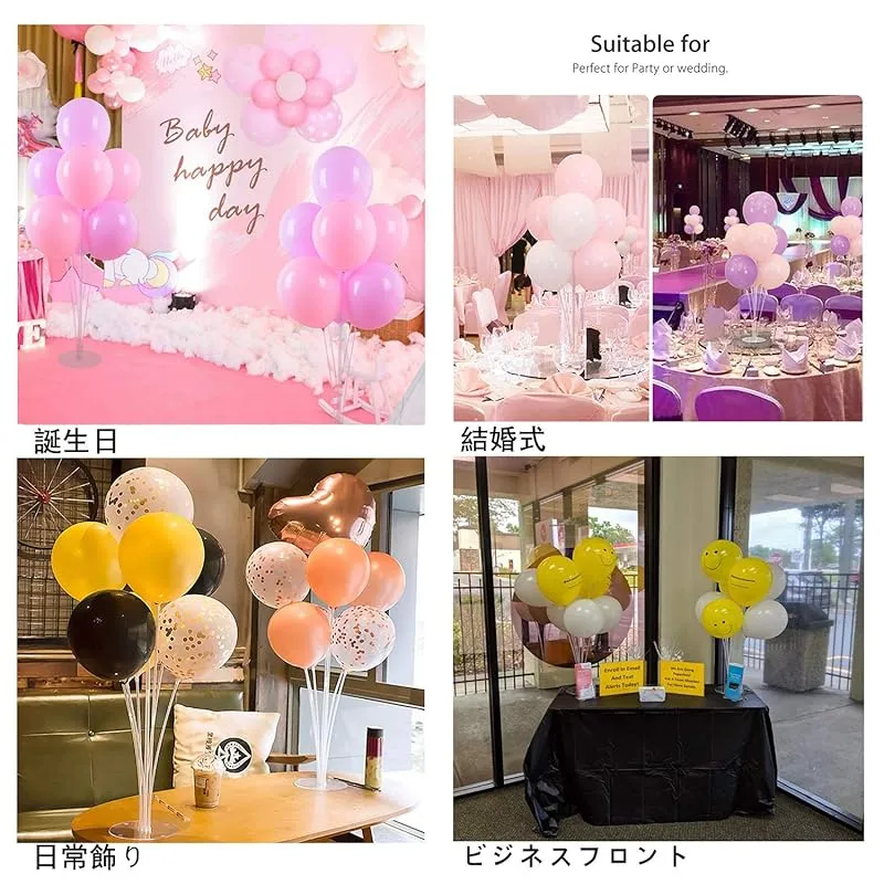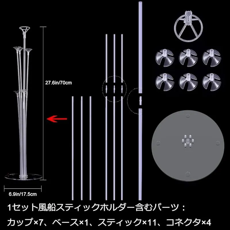 【商品説明】 ヘリウムガス不要で簡単にバルーンを保持するバルーンコラムスタンド。 自由に色を組み合わせ、バルーン花と3階のバルーンタワーを作れます。 結婚式、誕生日パーティー、記念日、パーティー、お祭りなど美しい装飾になります。 告白などの時、ロマンチックな雰囲気を演出します。 室内だけではなく、室外の装飾に適しています。 写真撮影には役割を果たします。 注意:外で使う時、風に吹き倒されるのを防ぐため、ベースの上に重い物を置いてください。 パーティーが終了した後ス風船ティックを 分解して箱に収納、次回再利用可能。 パッケージ内容: 4セットバルーンスタンドがあります 各セットには1個のベース 11個のスティック(3個 20cm,2個 35cm,6個 37cm) 8個ユニオンジョイントと 14個のカップがあります あなたはあなたが望むものにそれらを接合することができます 操作簡単 風船ホルダーを組み立てるのは簡単です。膨らませる風船の口巻をねじりながら、リングの隙間に通して引っ張ります。 口巻をよくねじったままスティックの溝へ下から挟み込み上から出します 14個のラテックスバルーンまたはホイルバルーンを用意する必要があります。 説明書によると、それは組み立てて美しい風船の装飾になるためにわずか3分かかります。 そしてそれは異なる状況で何度も再利用することができます。